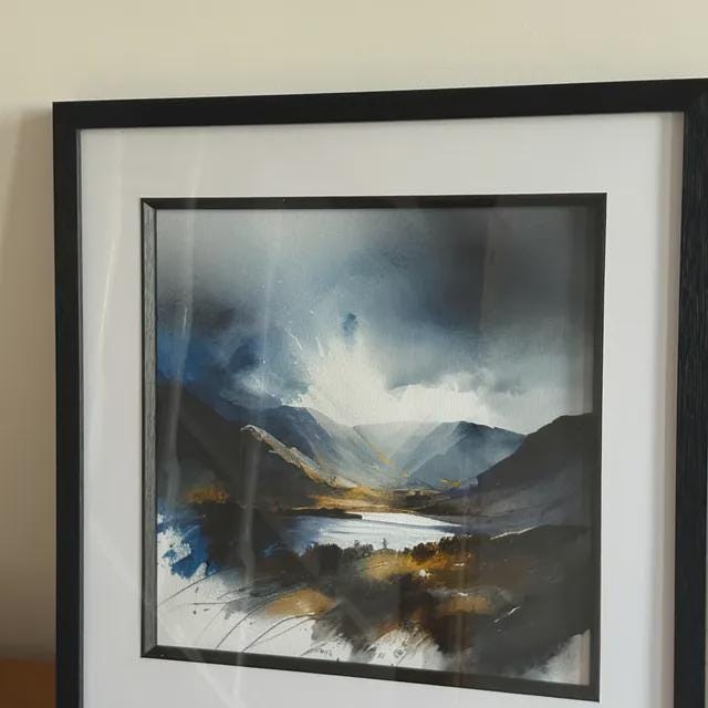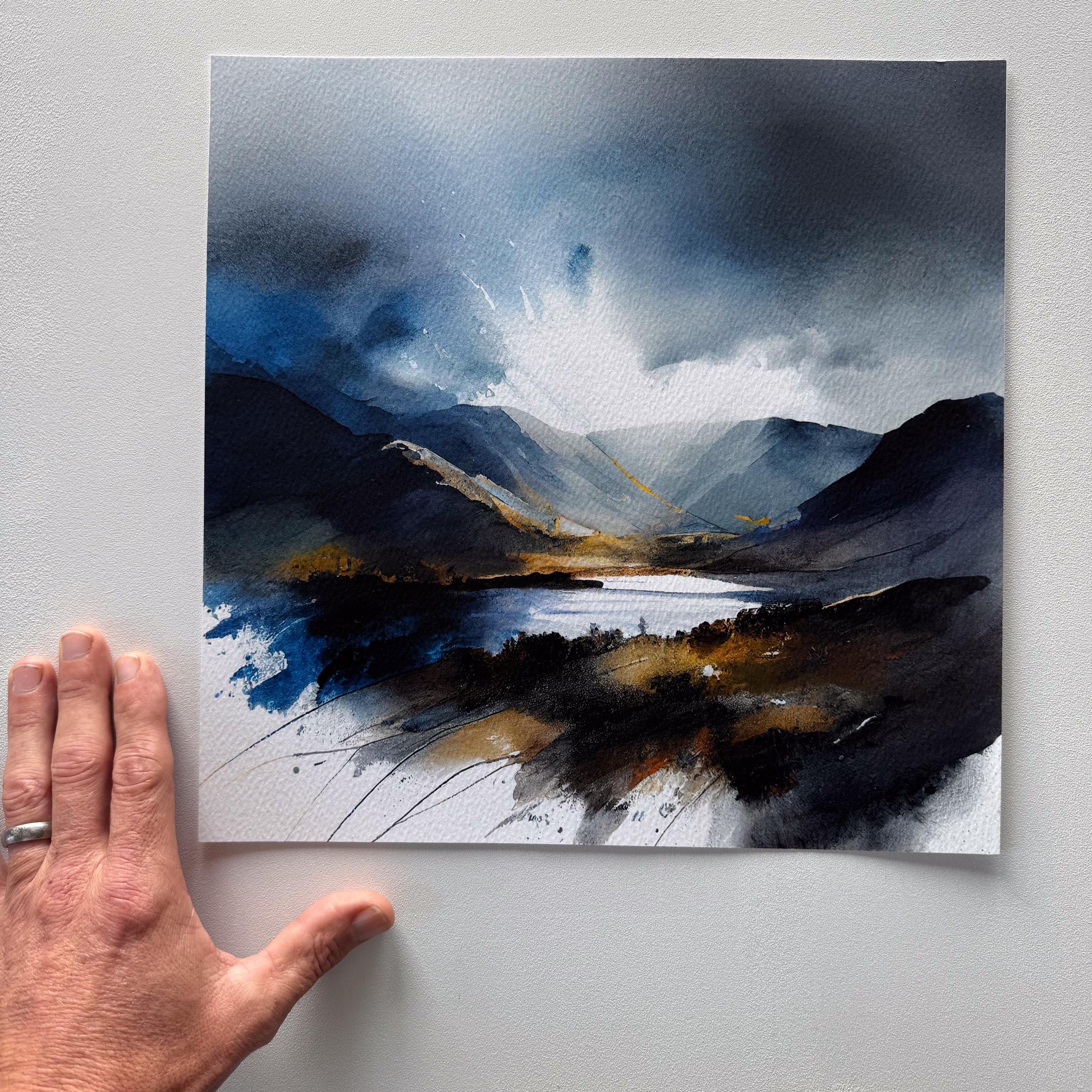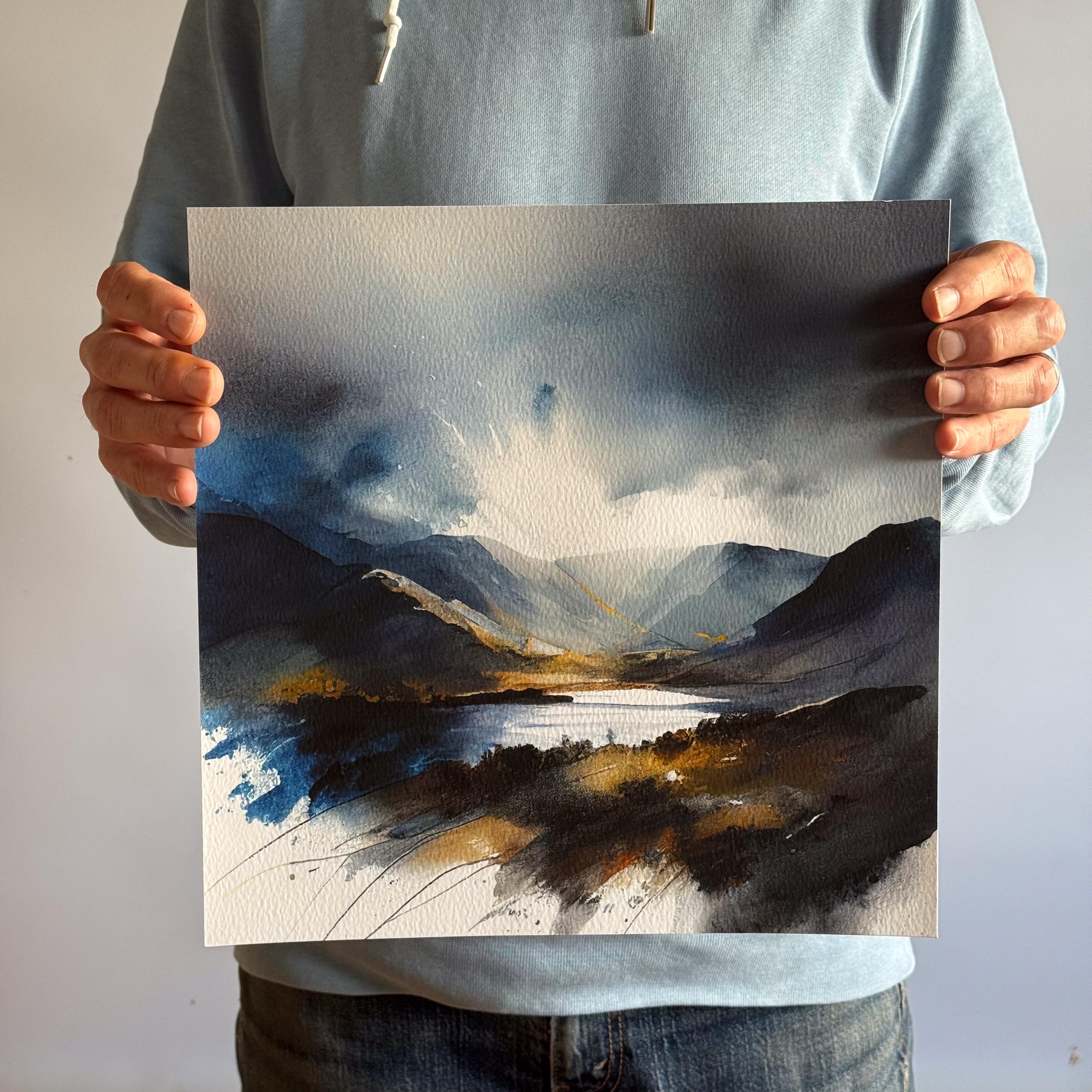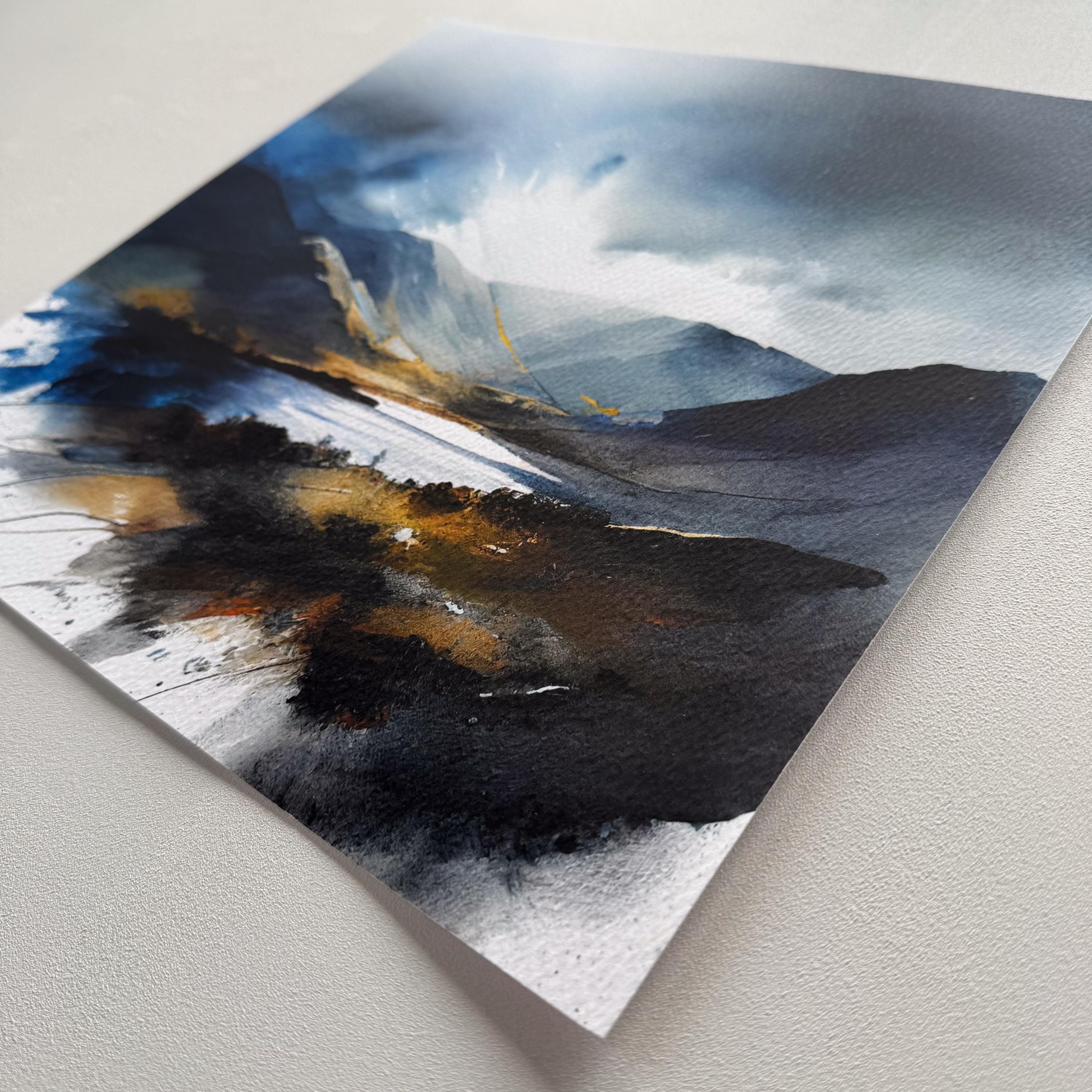 Lake District Abstract Painting Landscape Watercolour Painting. An abstract landscape print of the the Lake District. My prints are produced on premium heavyweight watercolour paper or canvas giving them a textured and original painting feel. Extremely accurate colour reproduction and lightfast ink means they are guaranteed not to fade for generations.