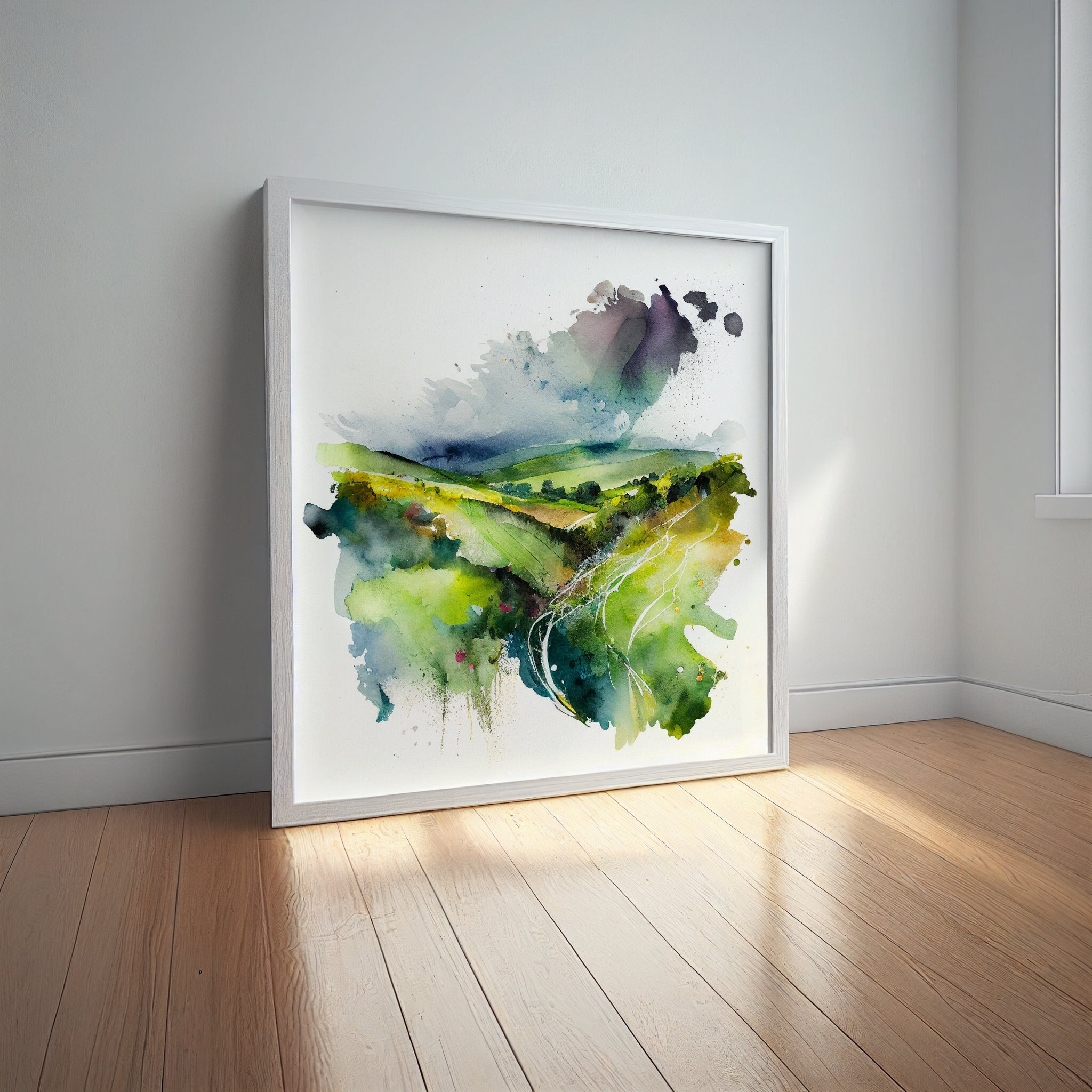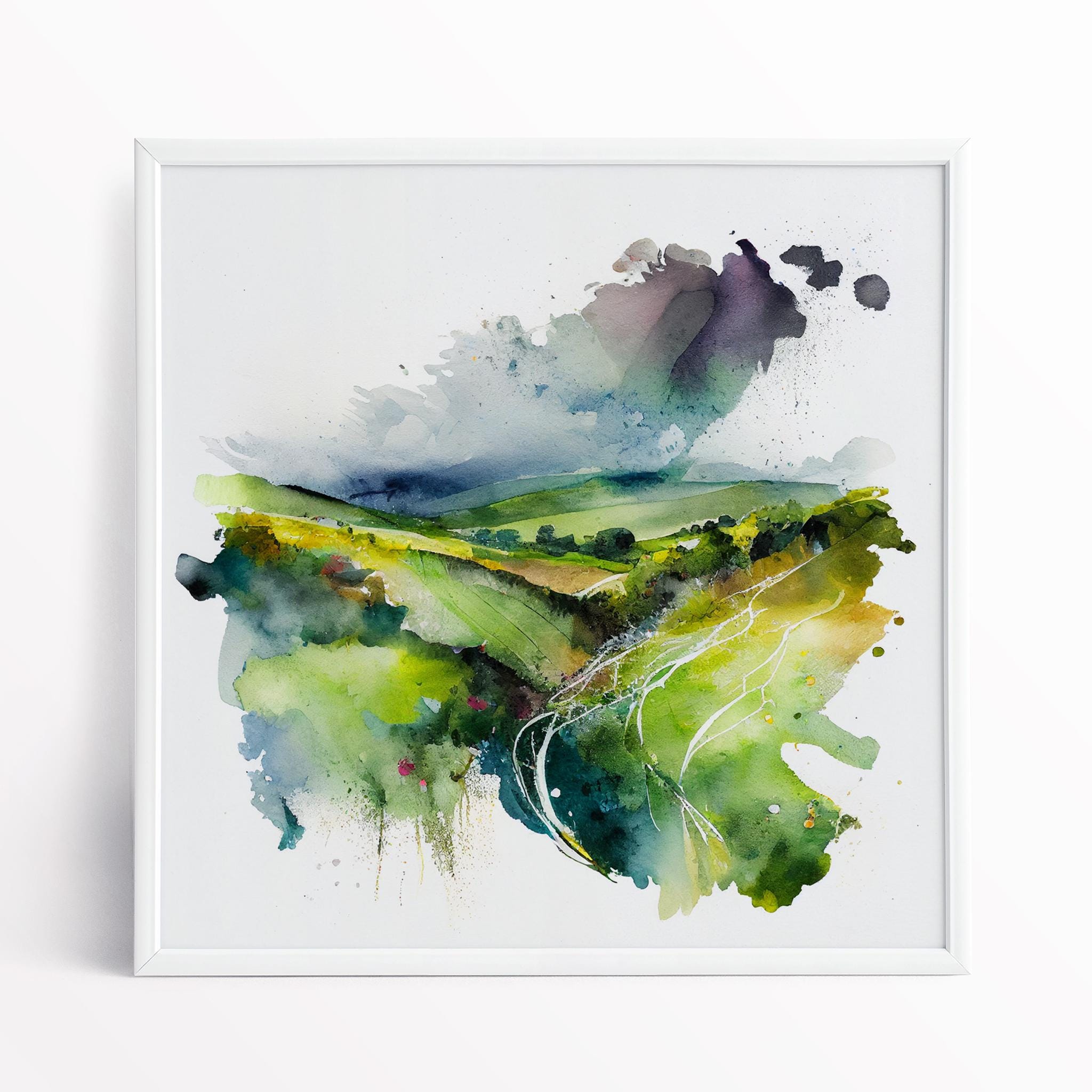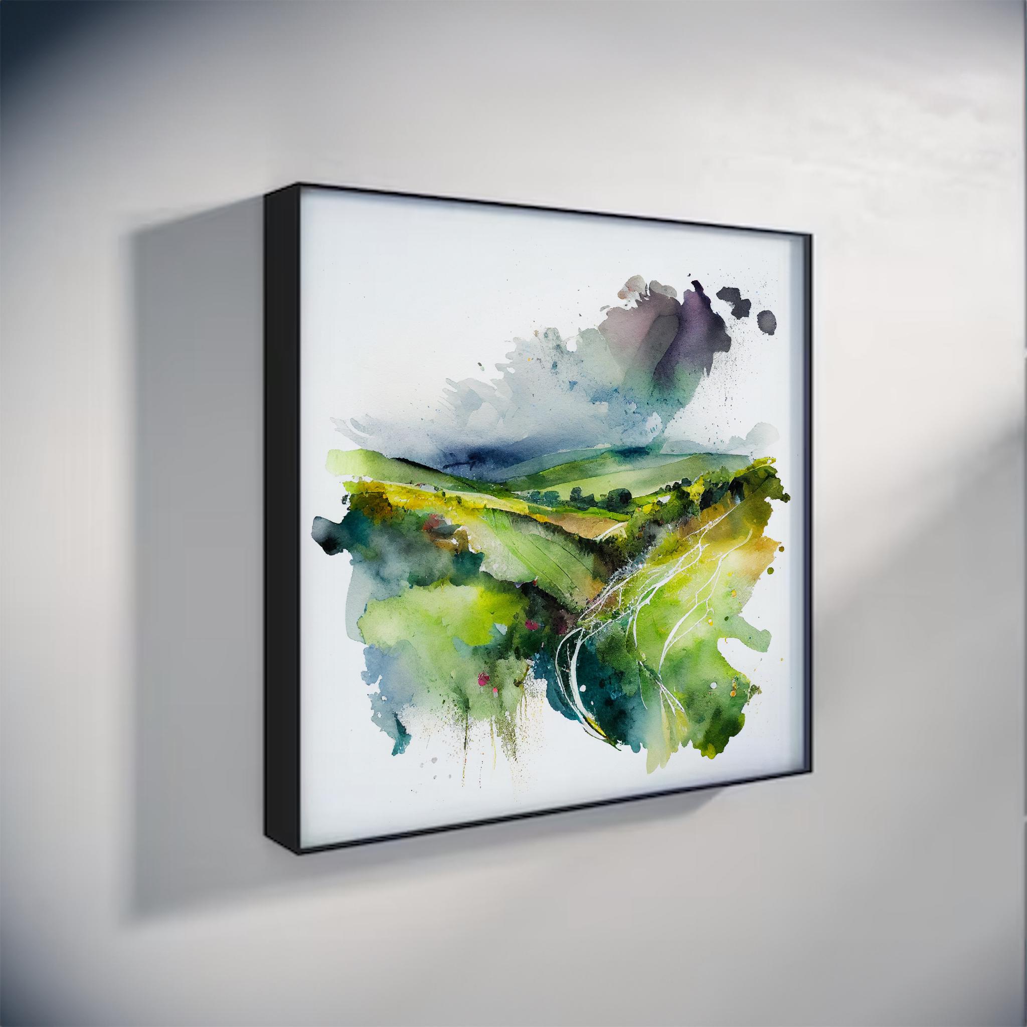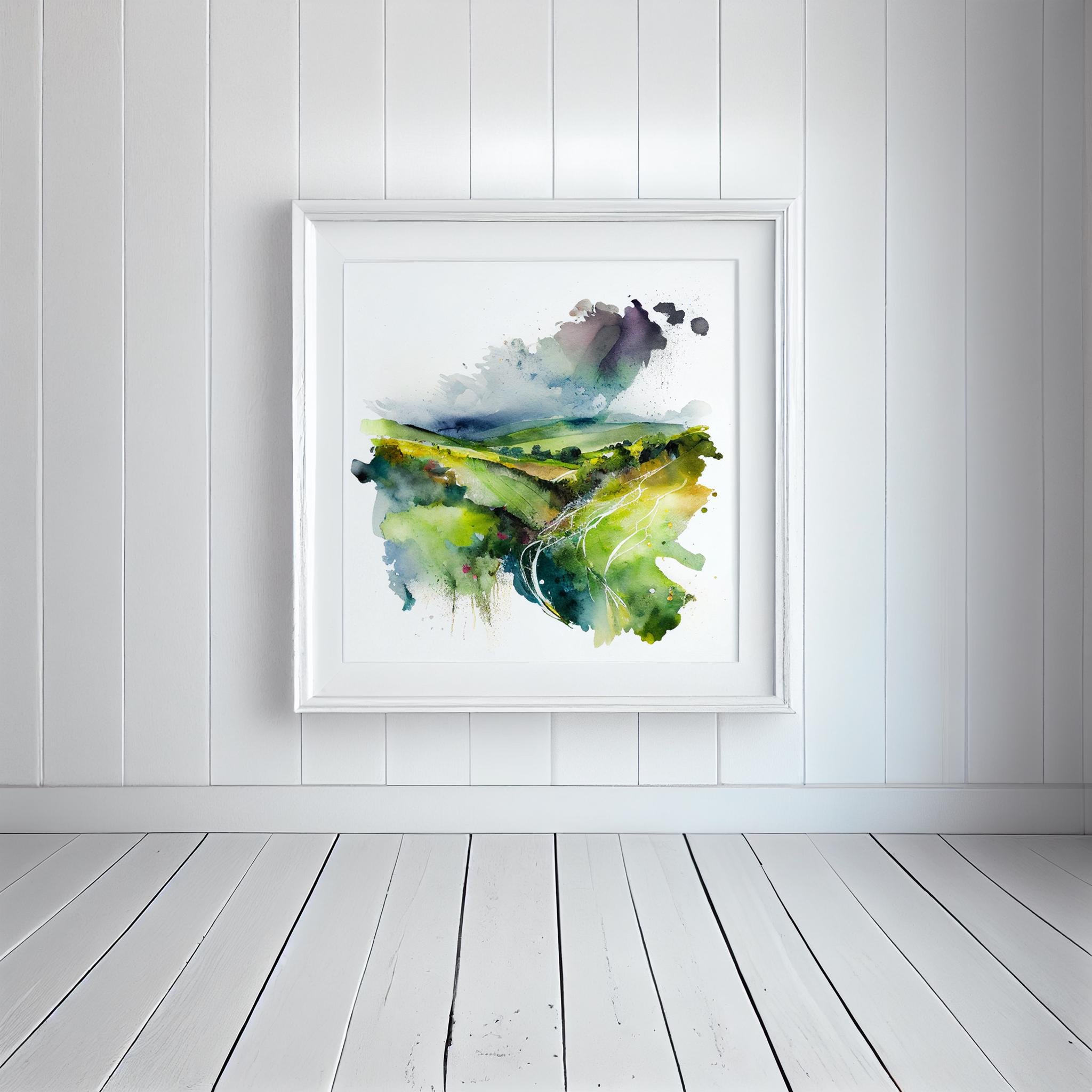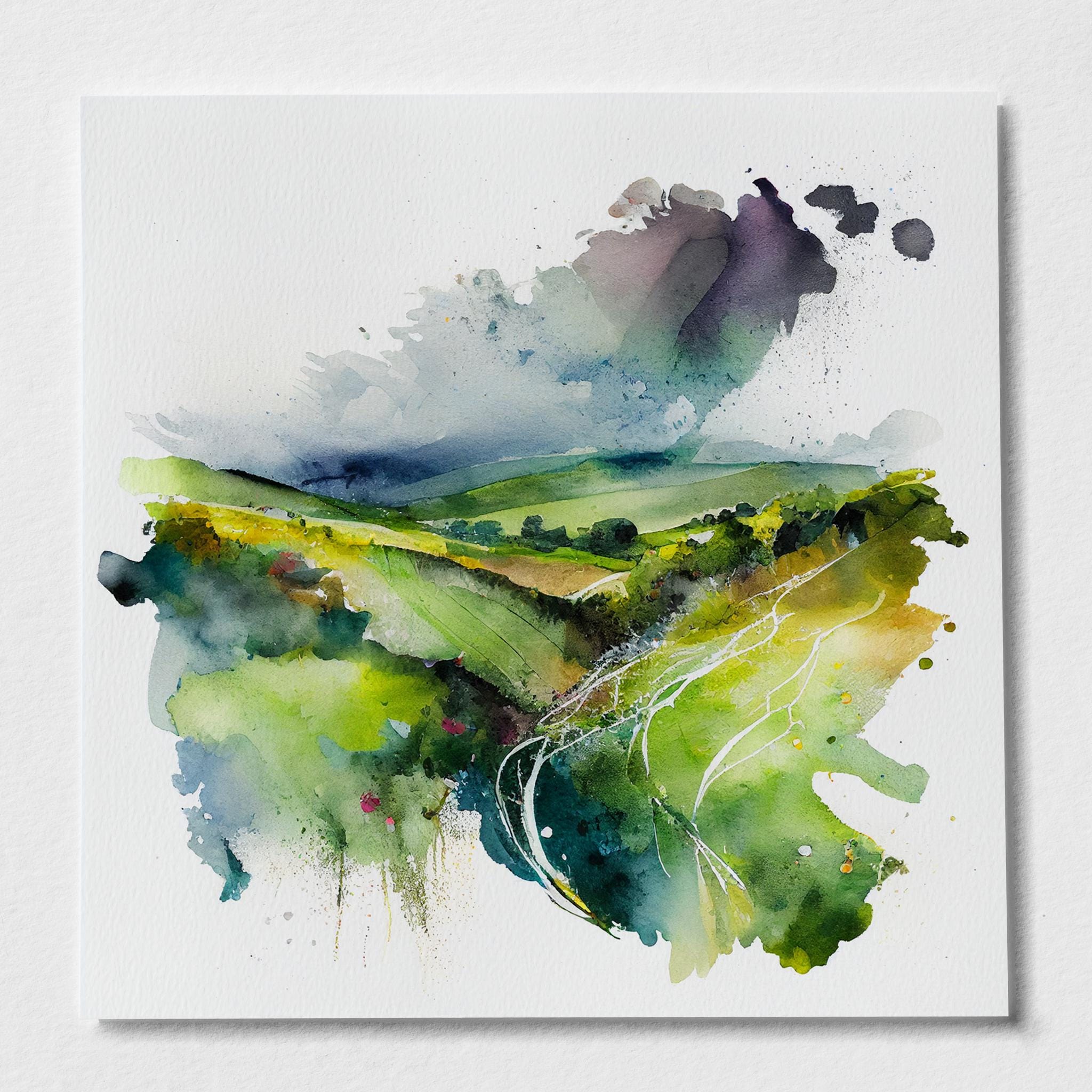 Southdowns Abstract Landscape Watercolour Painting. An abstract landscape print of the original South Downs Painting. These high-quality prints are produced on premium heavyweight watercolour paper or canvas, giving them a textured and authentic feel. The vibrant colours, broad brushstrokes and intricate details of the painting are sure to make a statement in any room. An ideal gift for any nature lover, or as a treat for yourself.