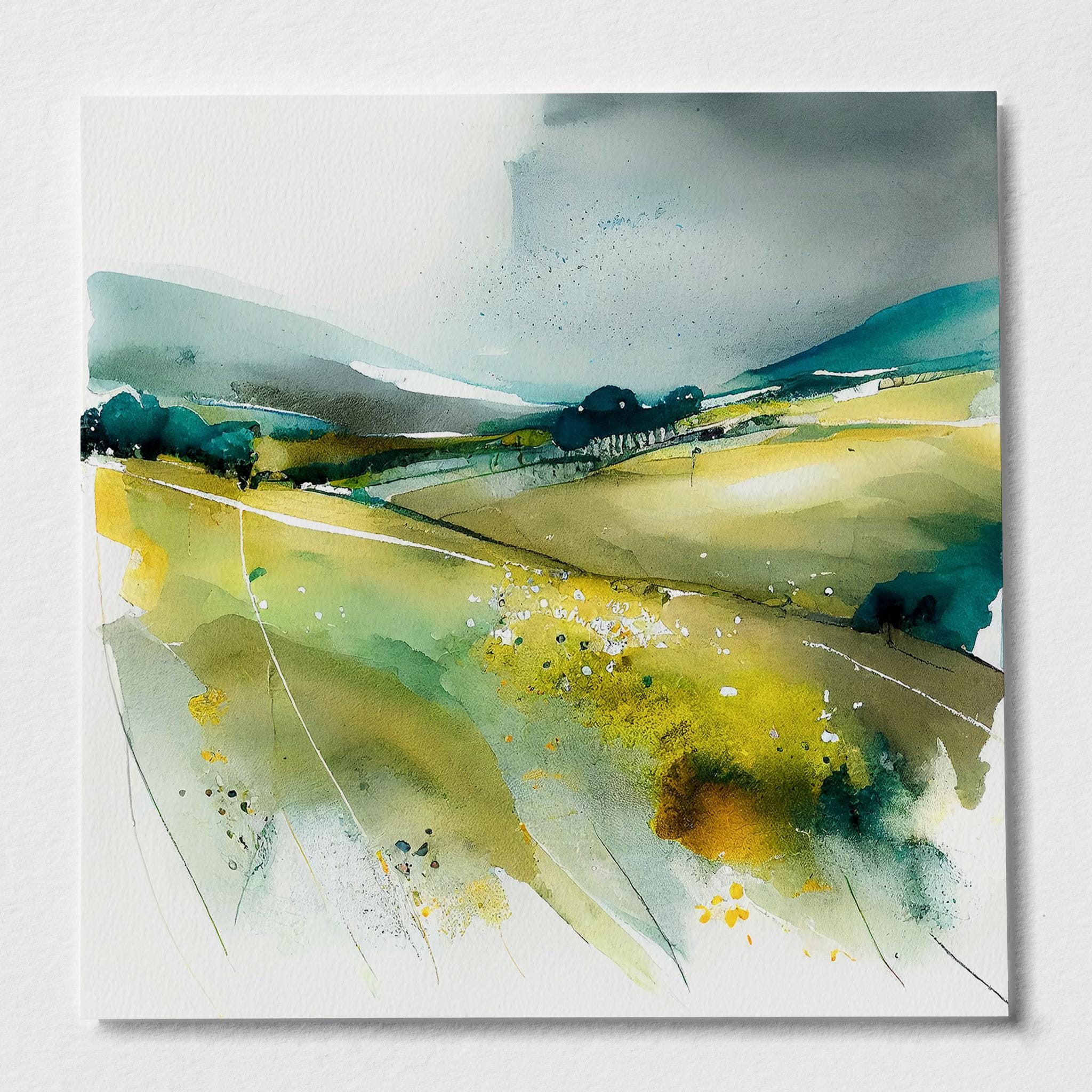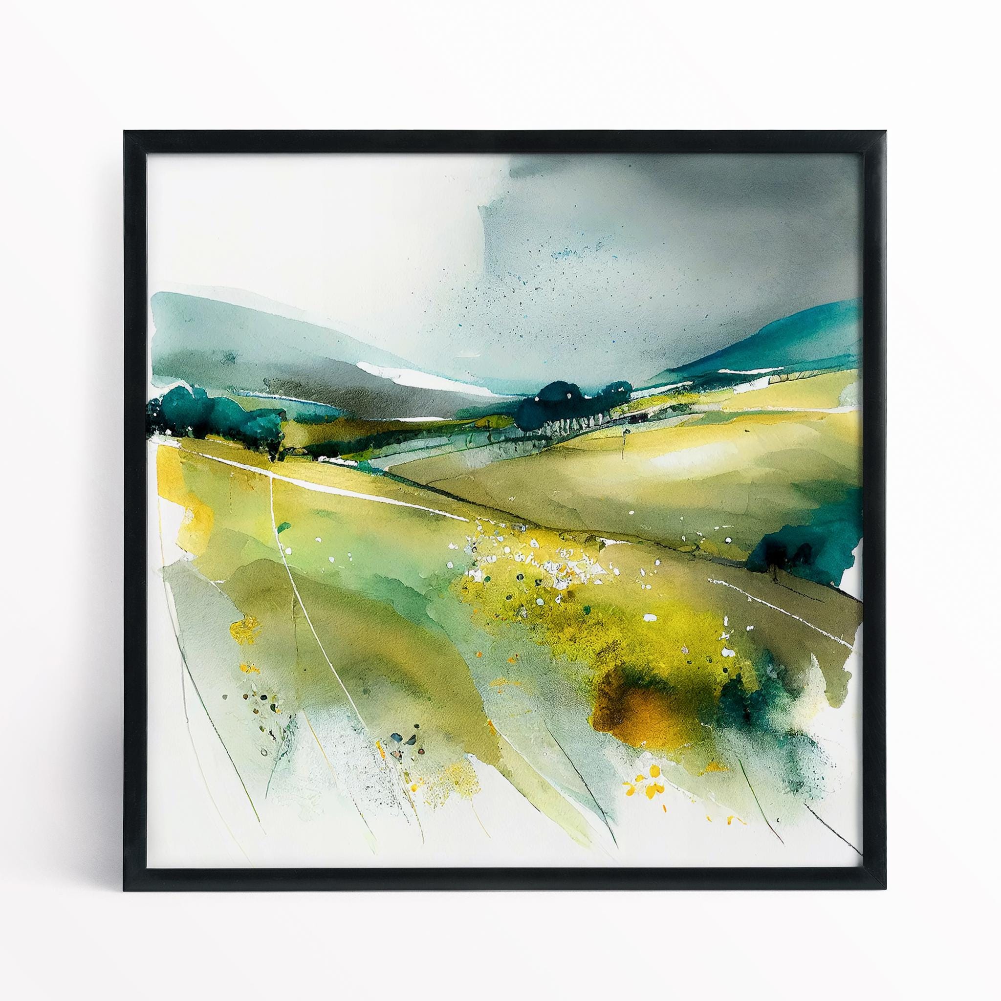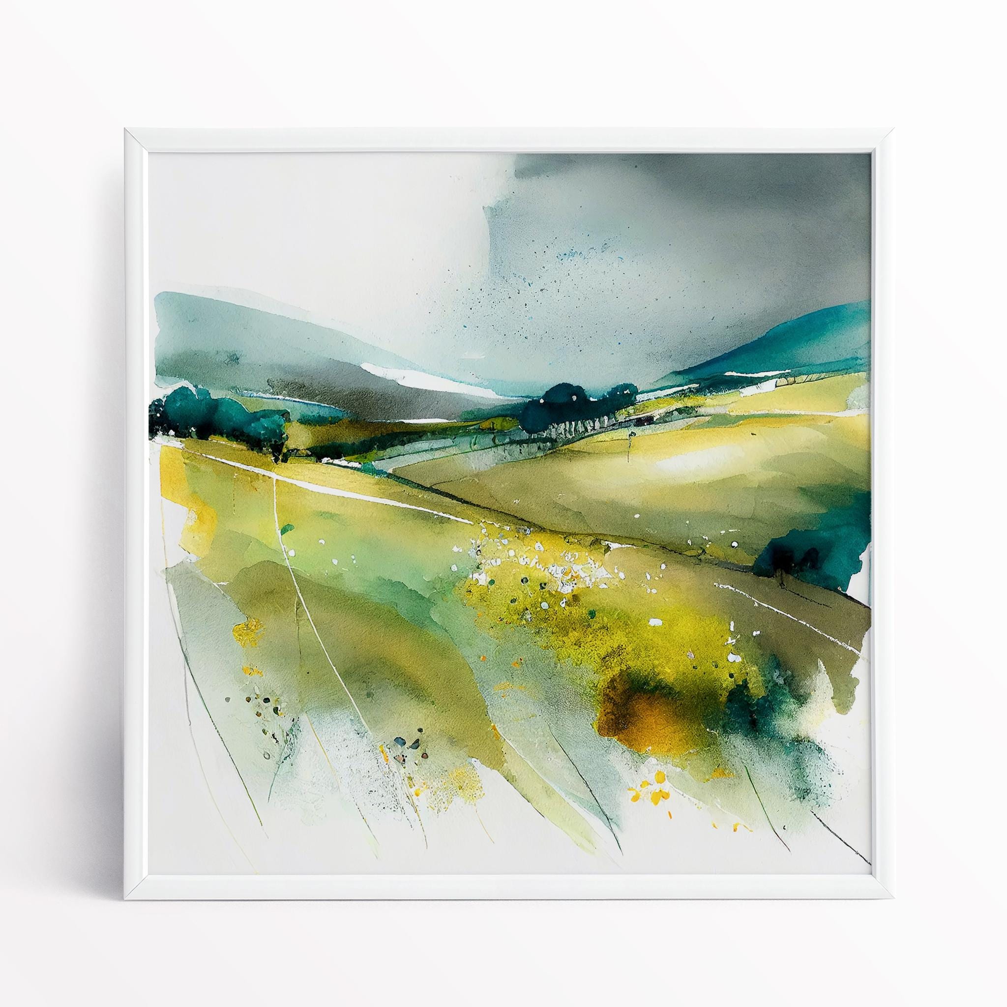 Abstract Landscape Watercolour Painting. An abstract landscape print of the original South Downs Painting. These high-quality prints are produced on premium heavy weight watercolour paper, giving them a textured and authentic feel. The vibrant colours, broad brushstrokes and intricate details of the painting are sure to make a statement in any room. An ideal gift for any nature lover, or as a treat for yourself.
