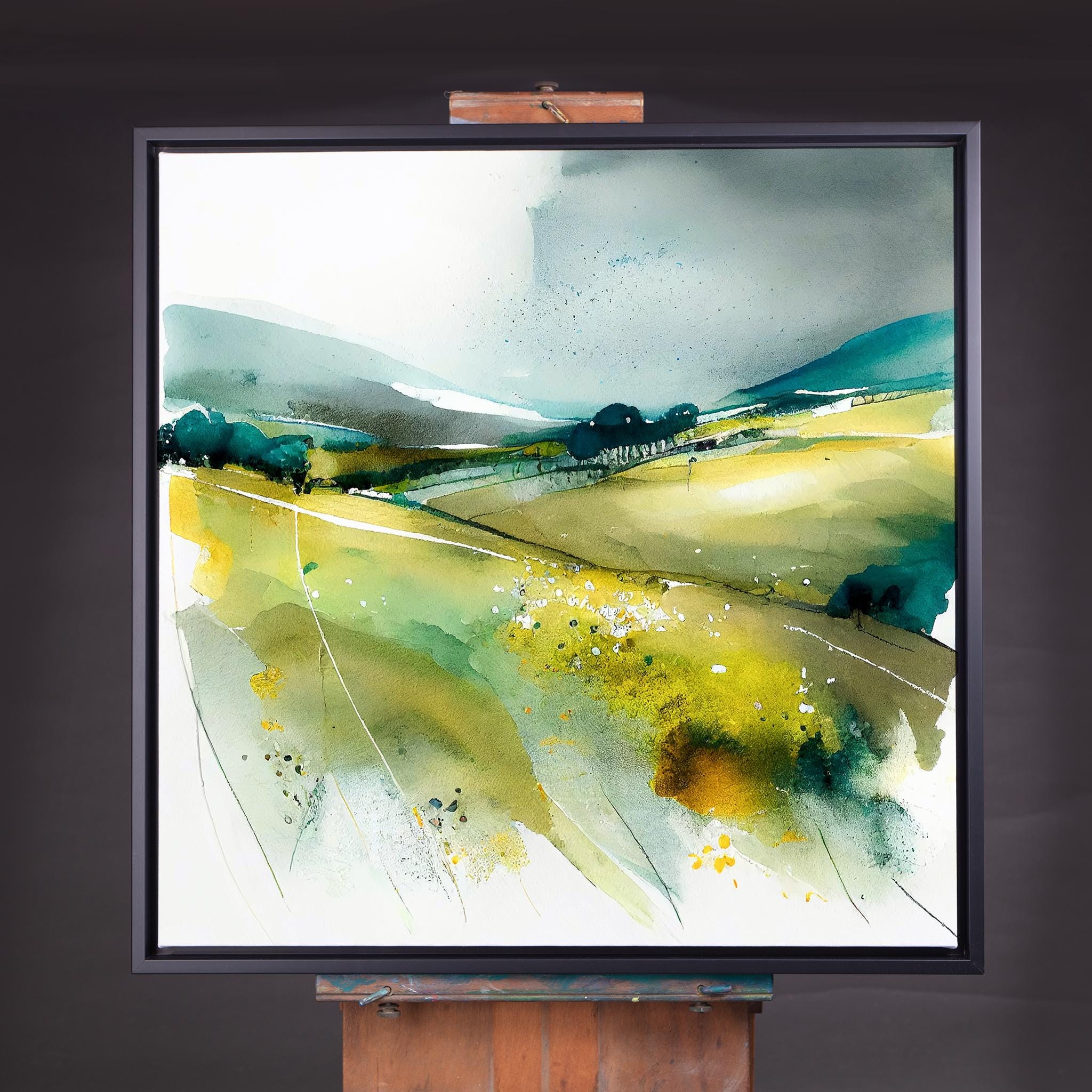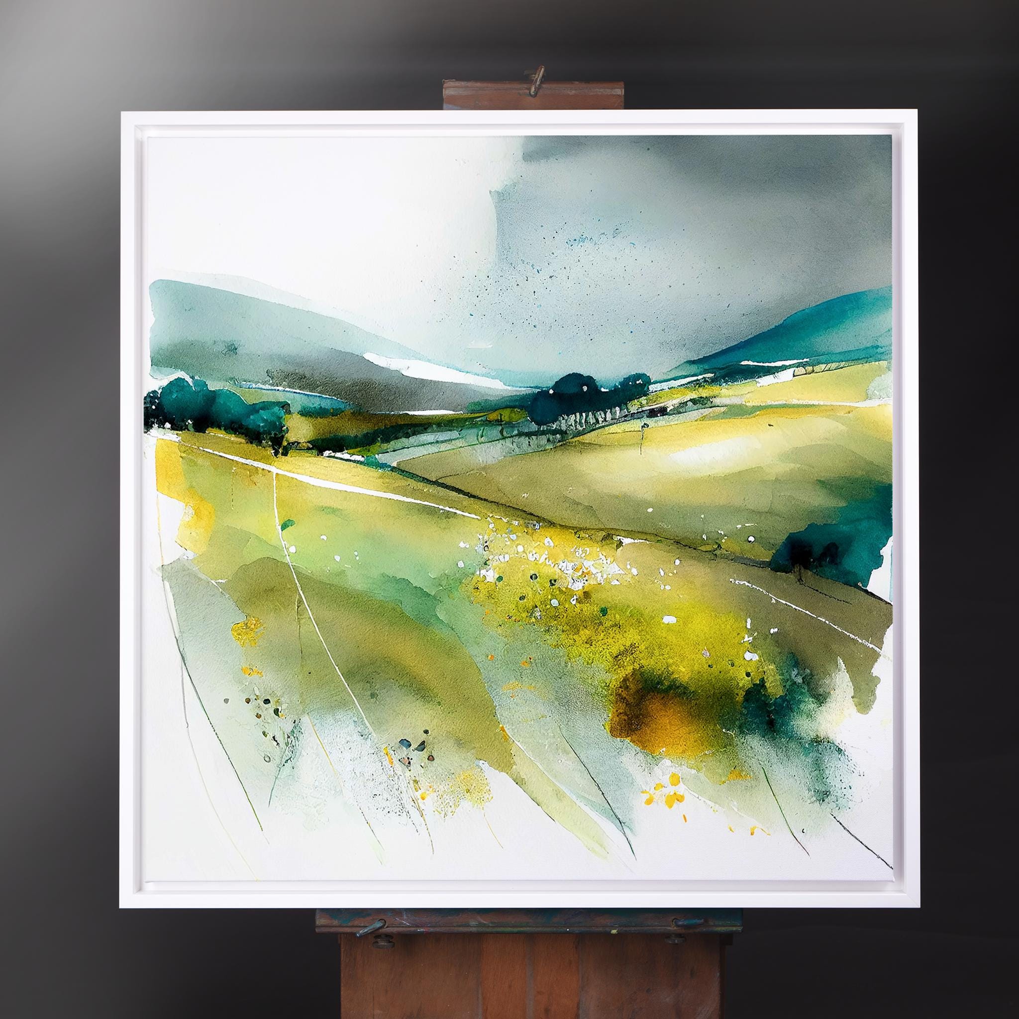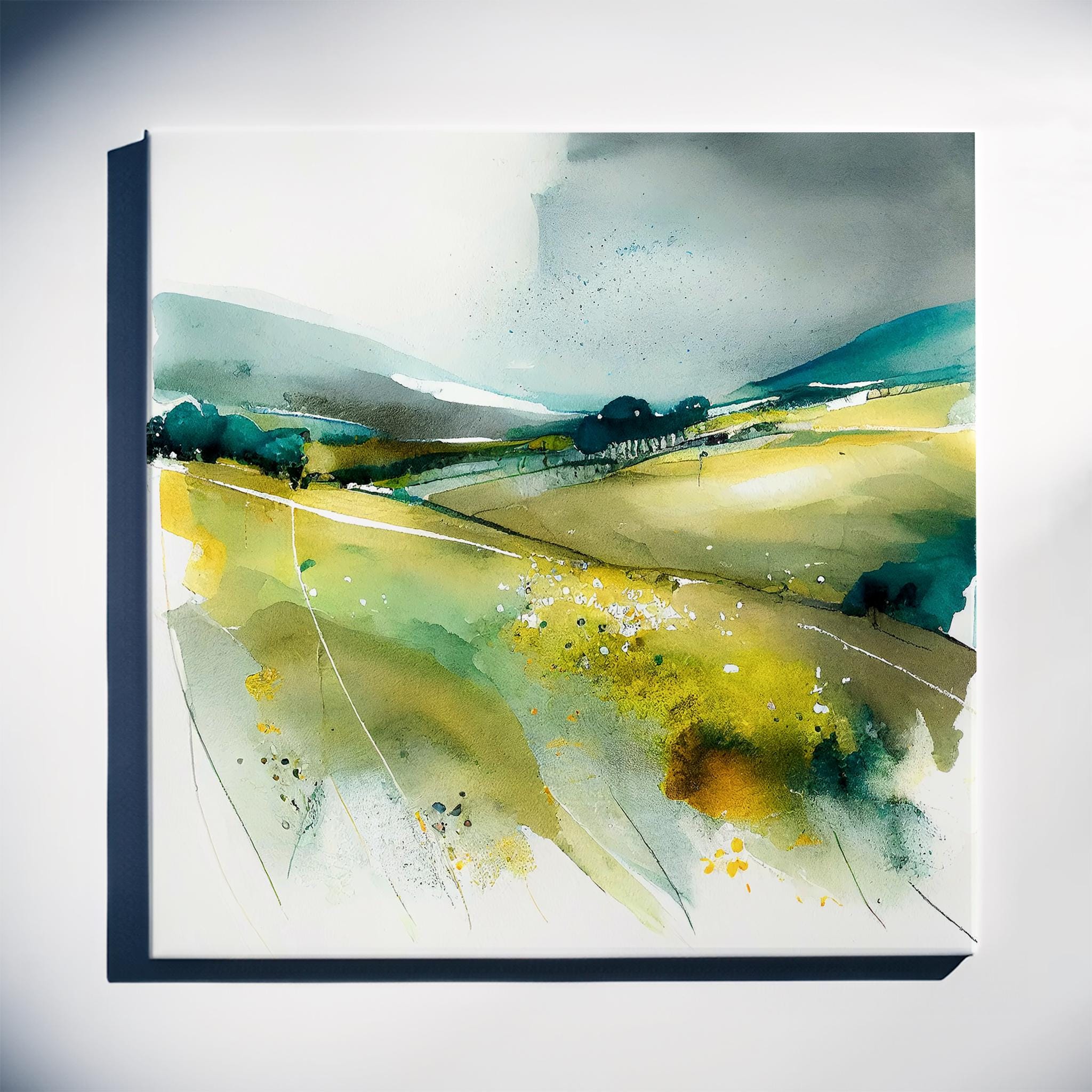 Abstract Landscape Watercolour Painting. An abstract landscape print of the original South Downs Painting. These high-quality prints are produced on premium heavy weight watercolour paper, giving them a textured and authentic feel. The vibrant colours, broad brushstrokes and intricate details of the painting are sure to make a statement in any room. An ideal gift for any nature lover, or as a treat for yourself.