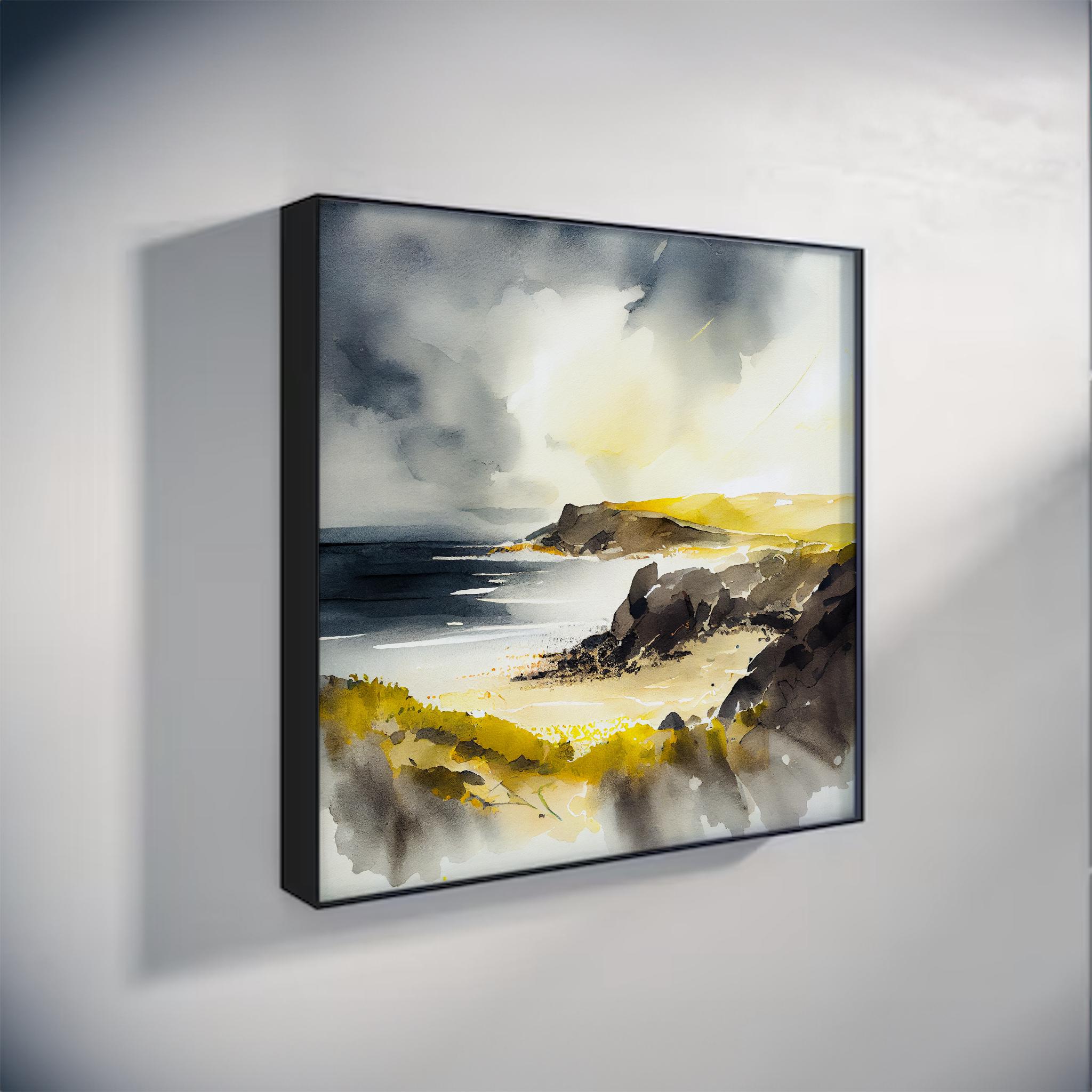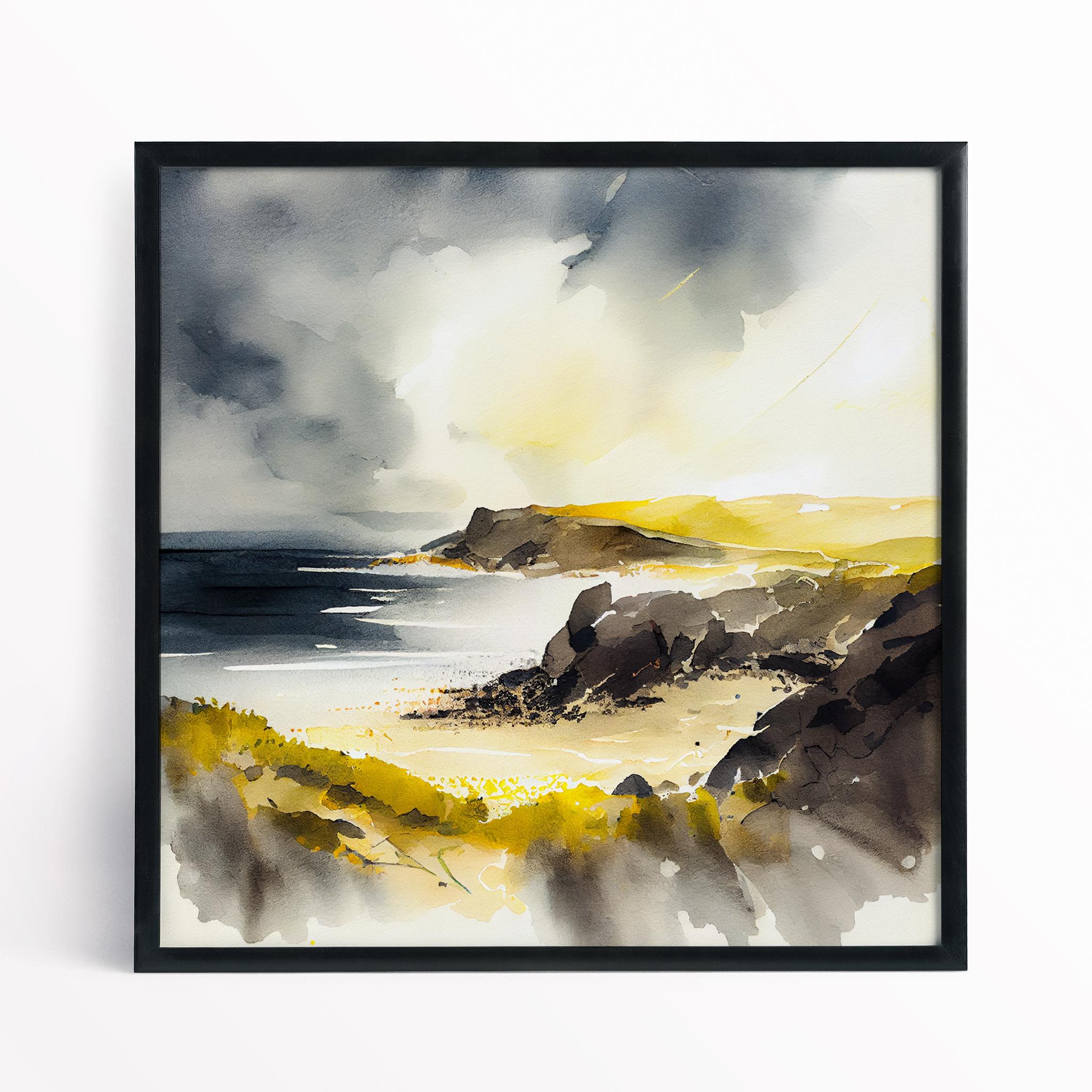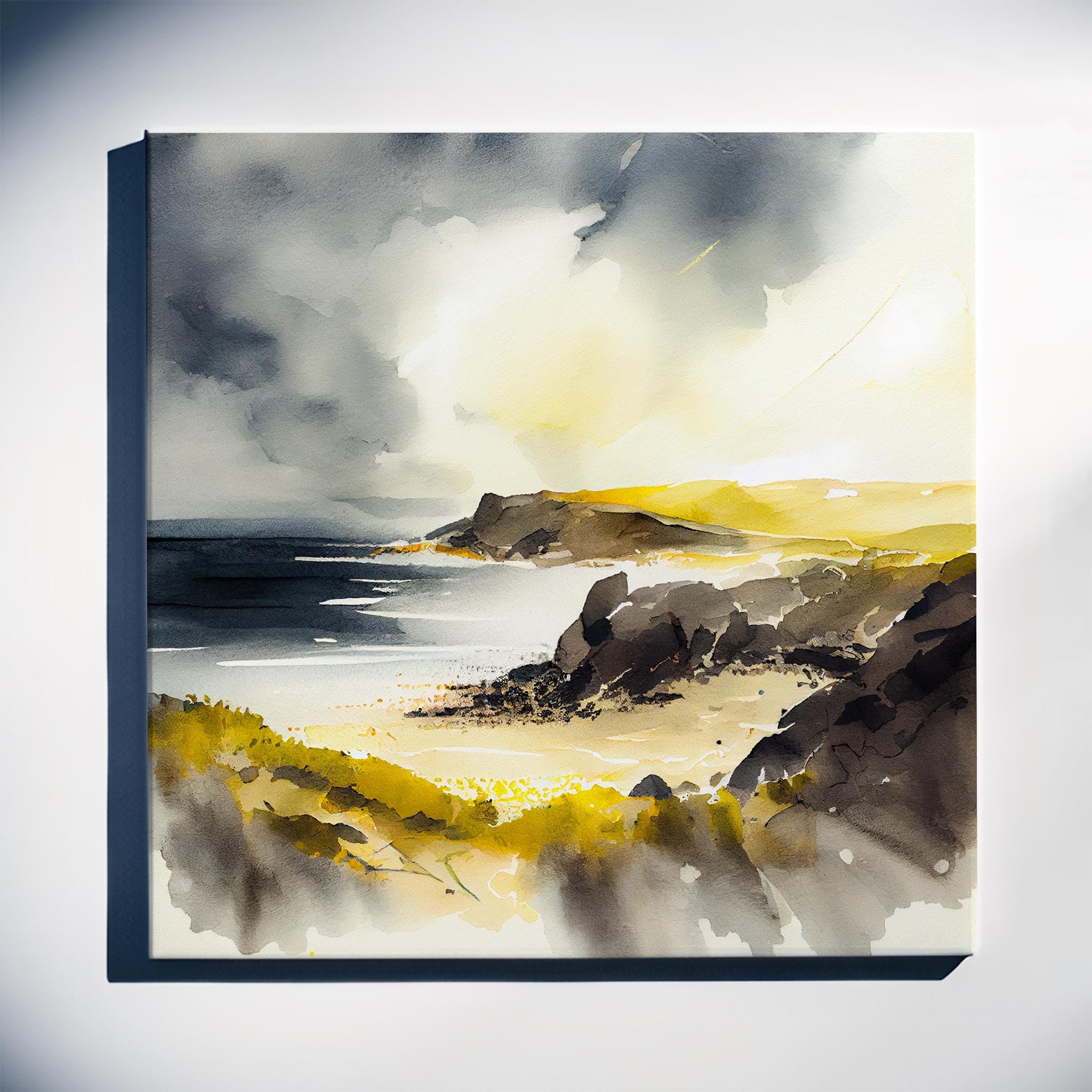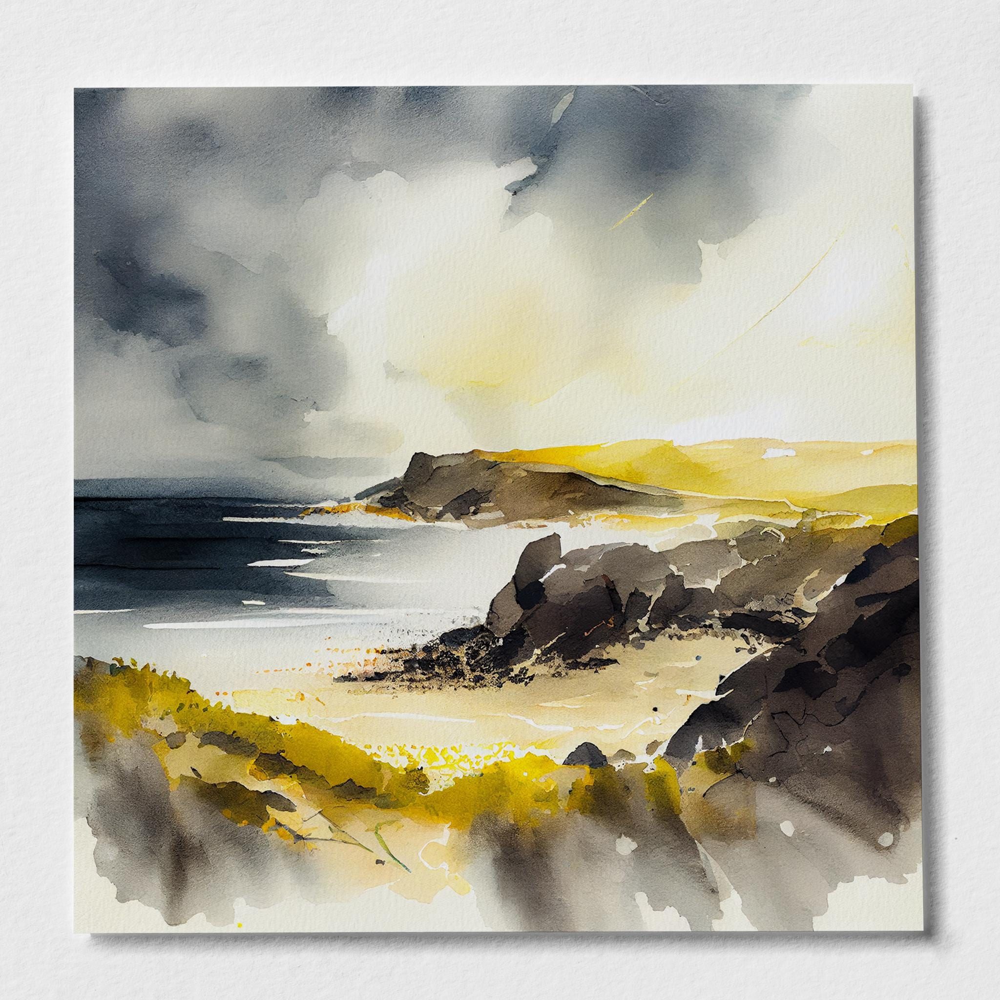 The Coastline of Cornwall, Abstract Seascape Watercolour Landscape Painting of the Cornish Coast. A dramatic abstract landscape print of the original Ocean Painting.
