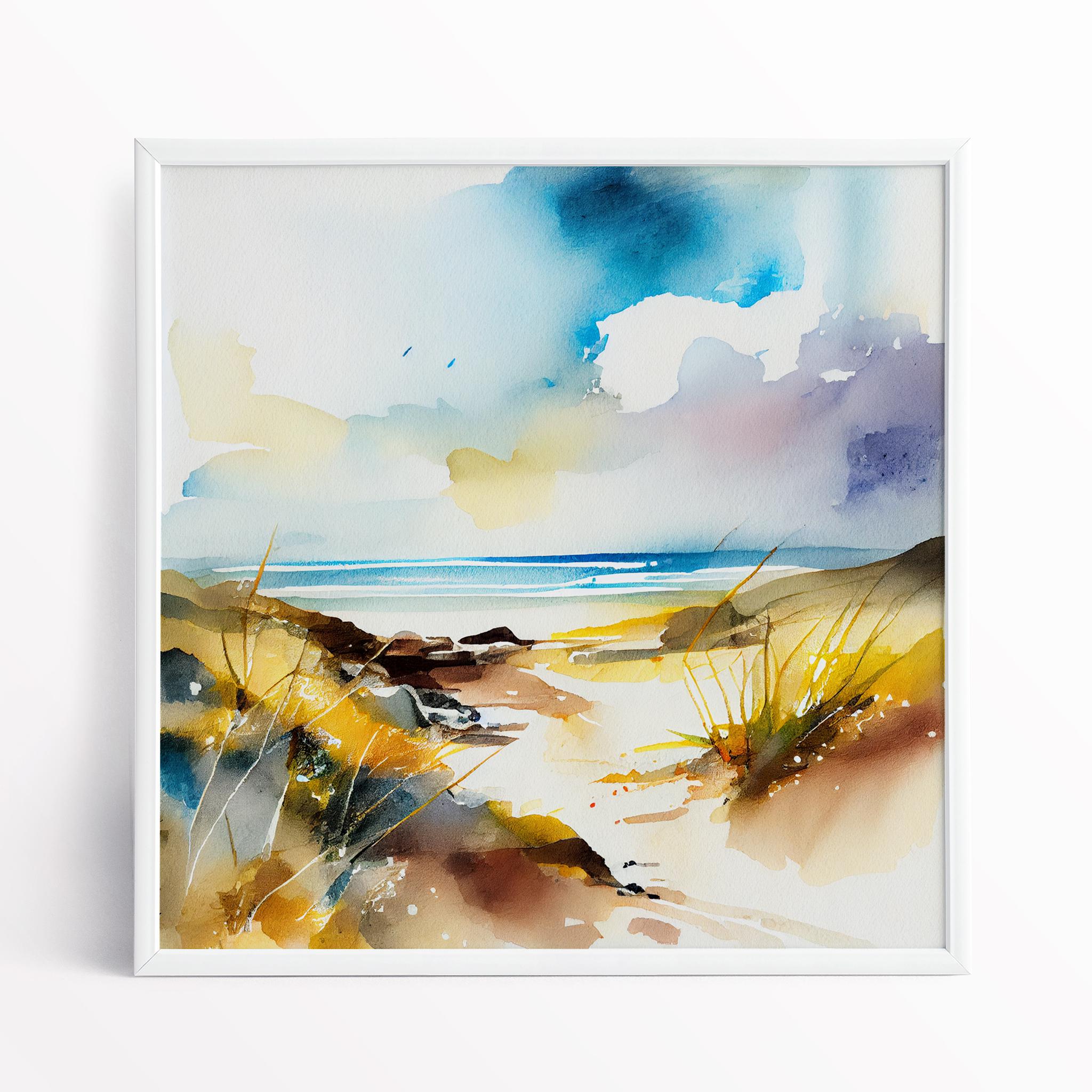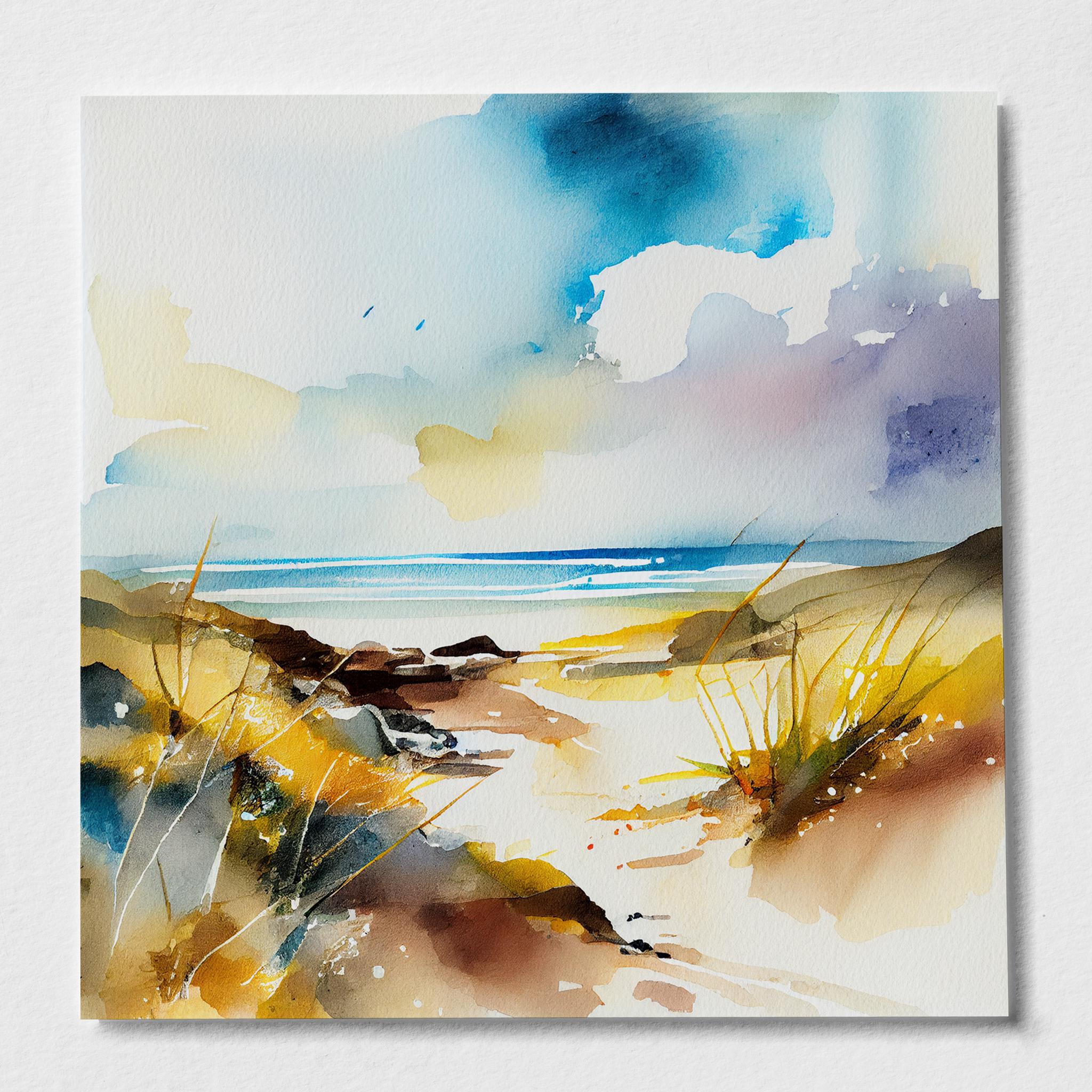 The Coastline of Welsh Beach in Pembrokeshire, Abstract Seascape Watercolour Landscape Painting of the Pembrokeshire Coast. A dramatic abstract landscape print of the original Ocean Painting.
