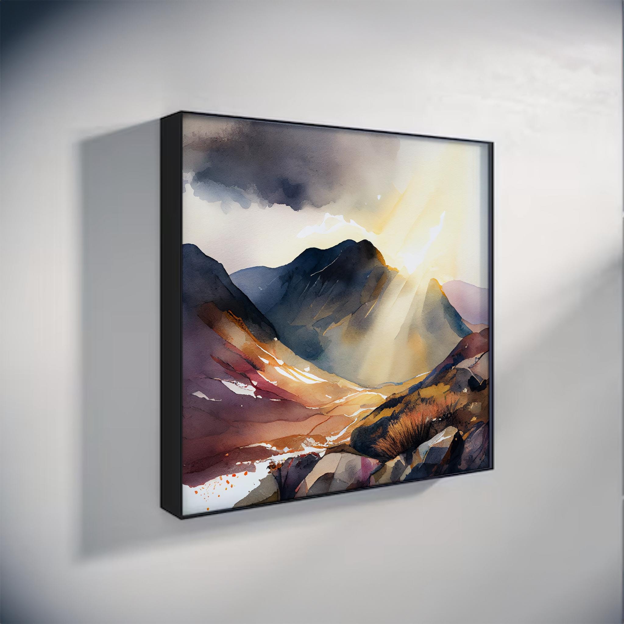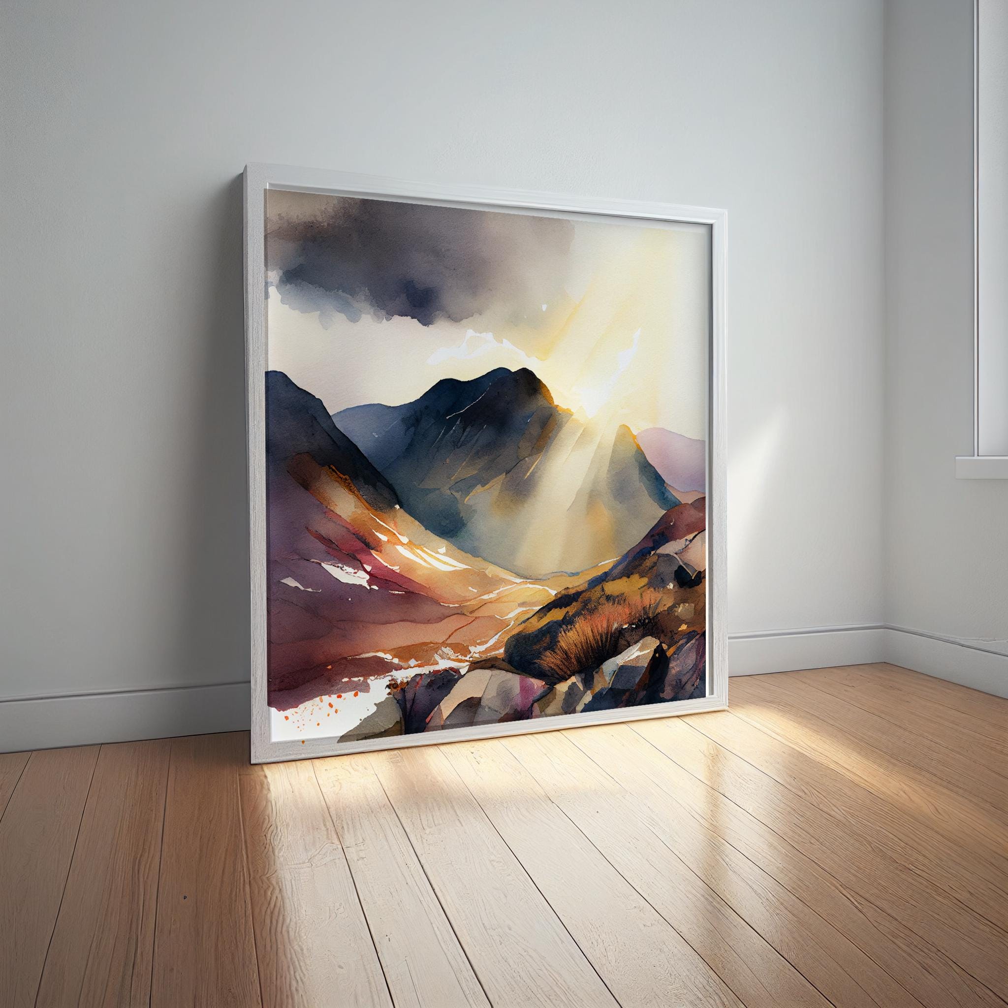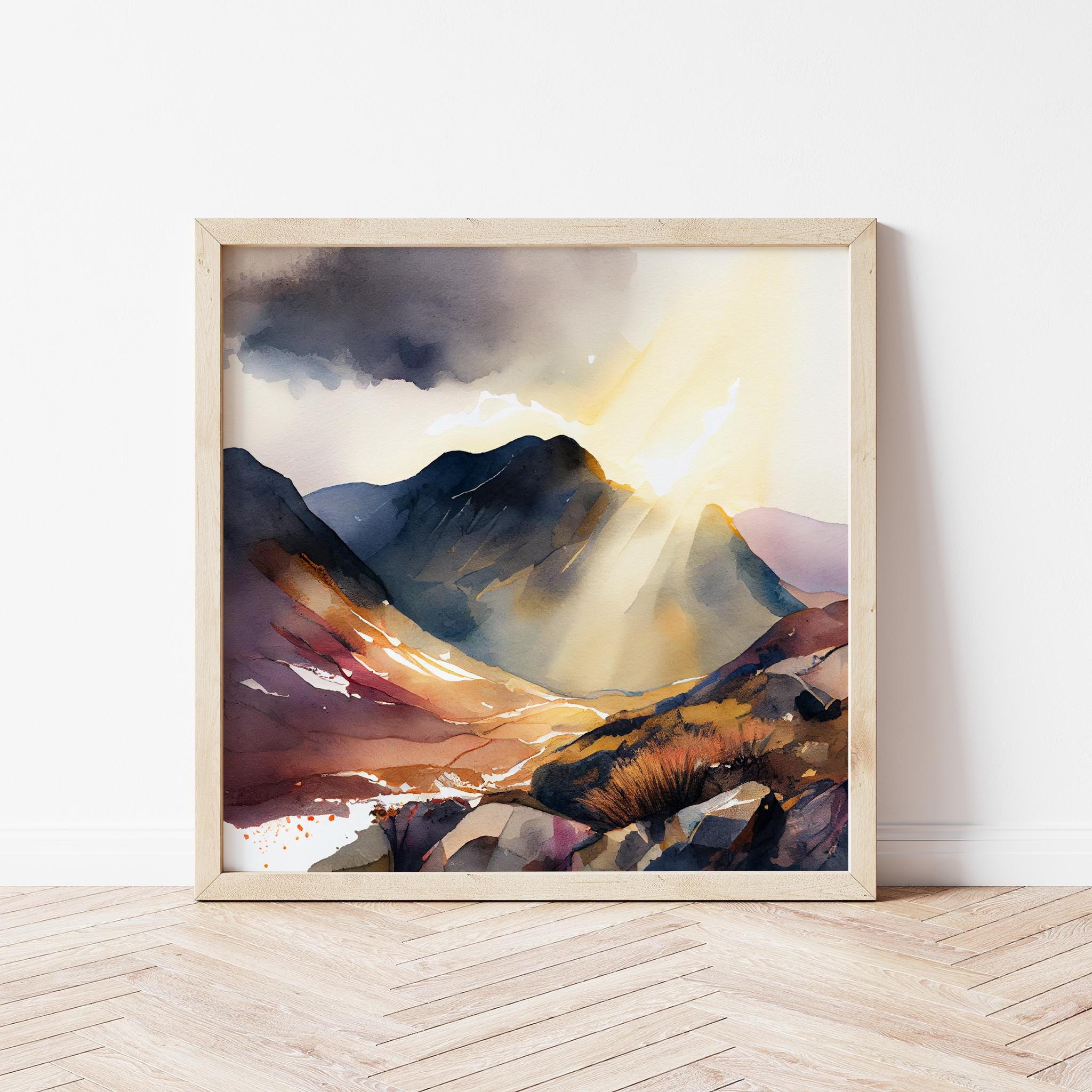 An abstract landscape painting of Scarfell Pike in the Lake District. Myhigh-quality prints are produced on premium heavyweight watercolour paper or Canvas, giving them a textured and authentic feel. The vibrant colours, broad brushstrokes and intricate details of this piece are sure to make a statement in any room. An ideal gift for any nature lover, or as a treat for yourself.