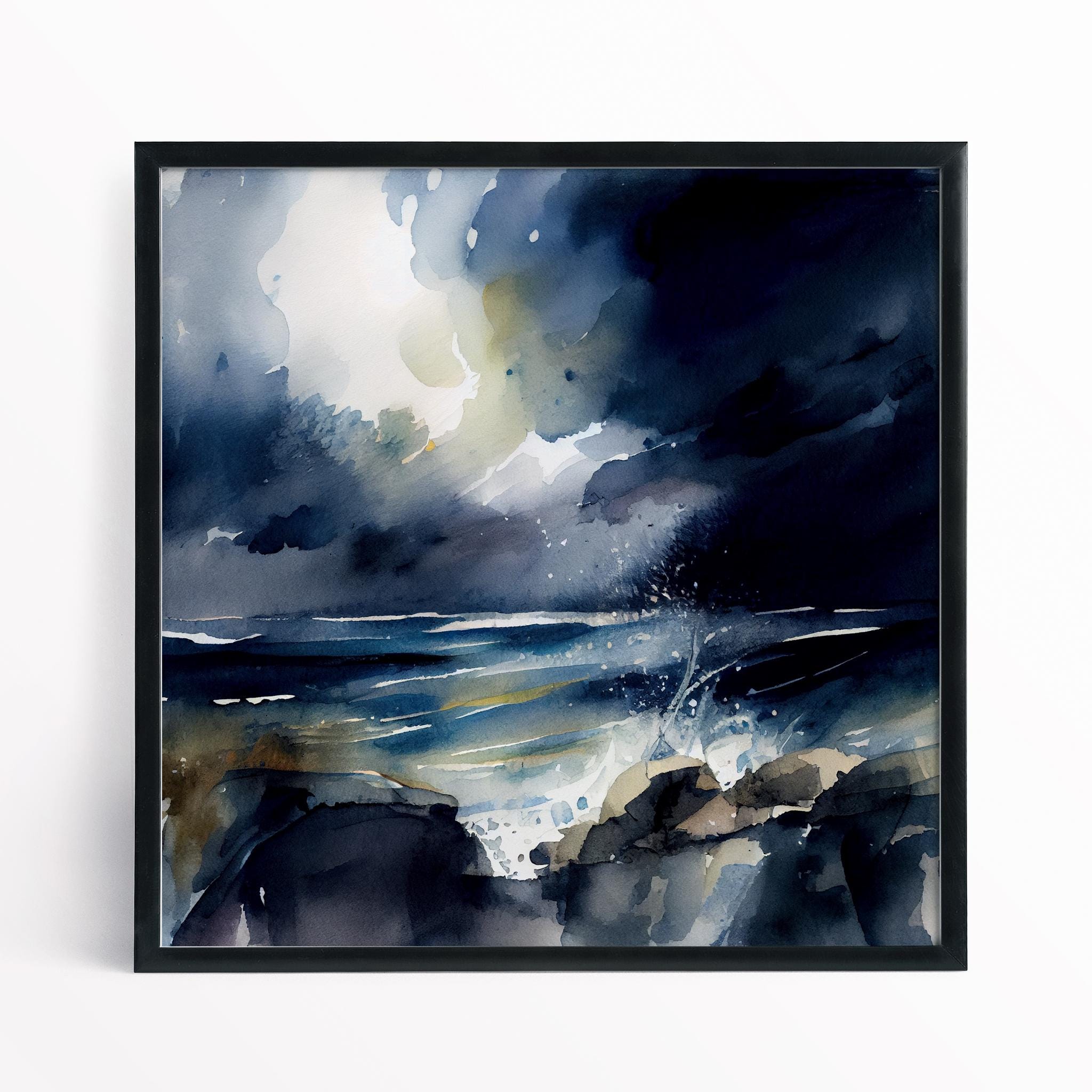 Abstract Landscape Seascape Watercolour Painting. A dramatic abstract landscape print of the Cornish Coastline. My prints are produced on premium heavyweight watercolour paper or canvas giving them a textured and original painting feel.