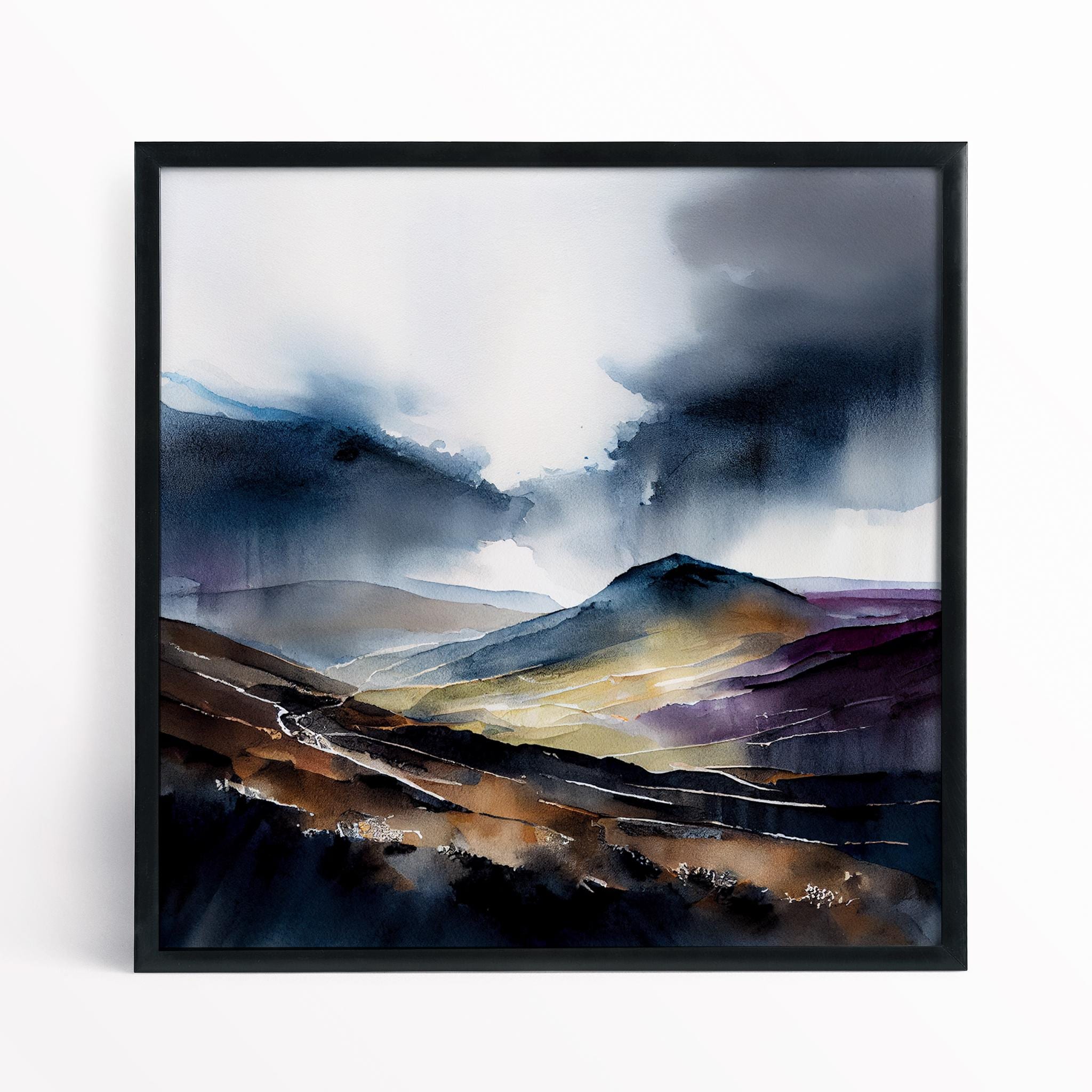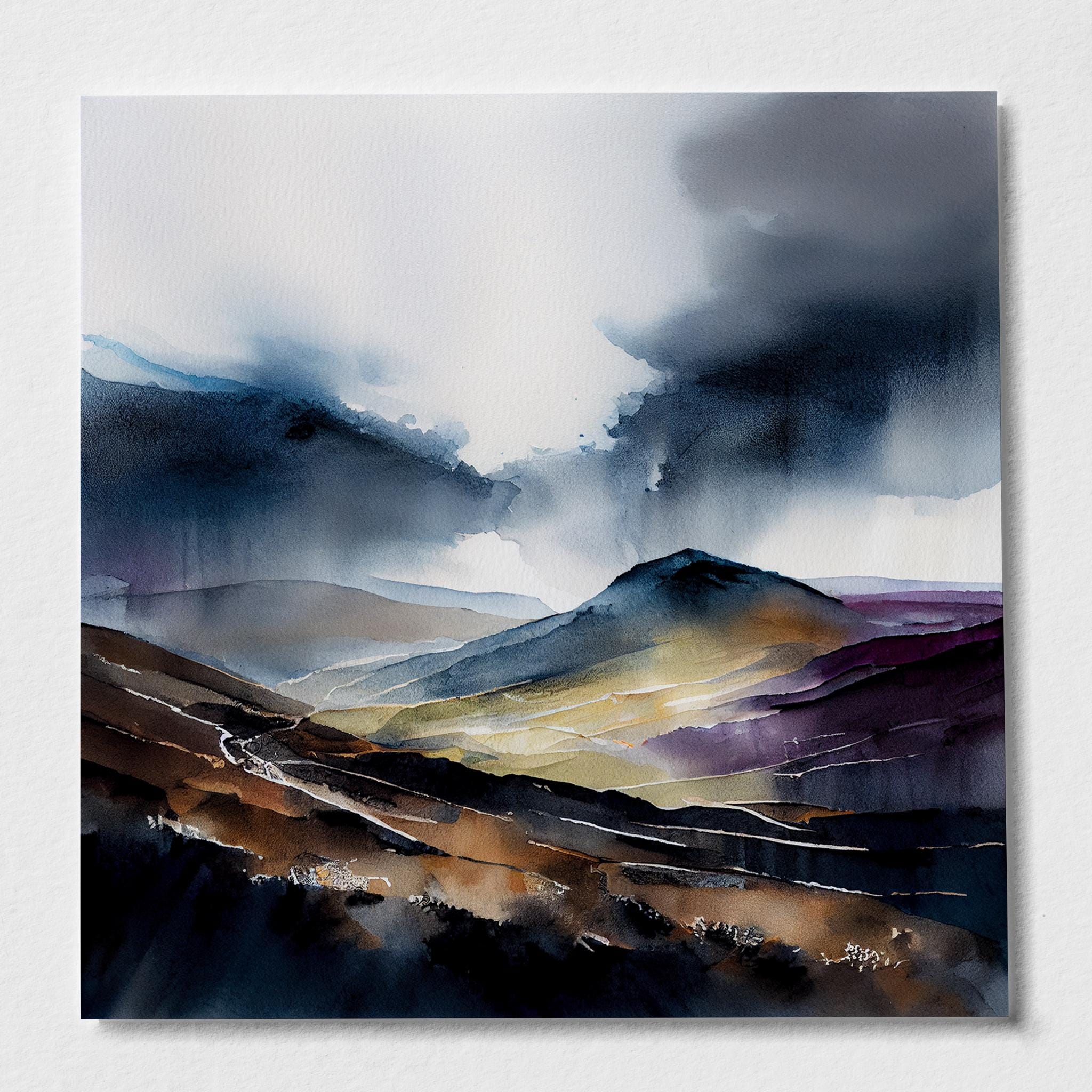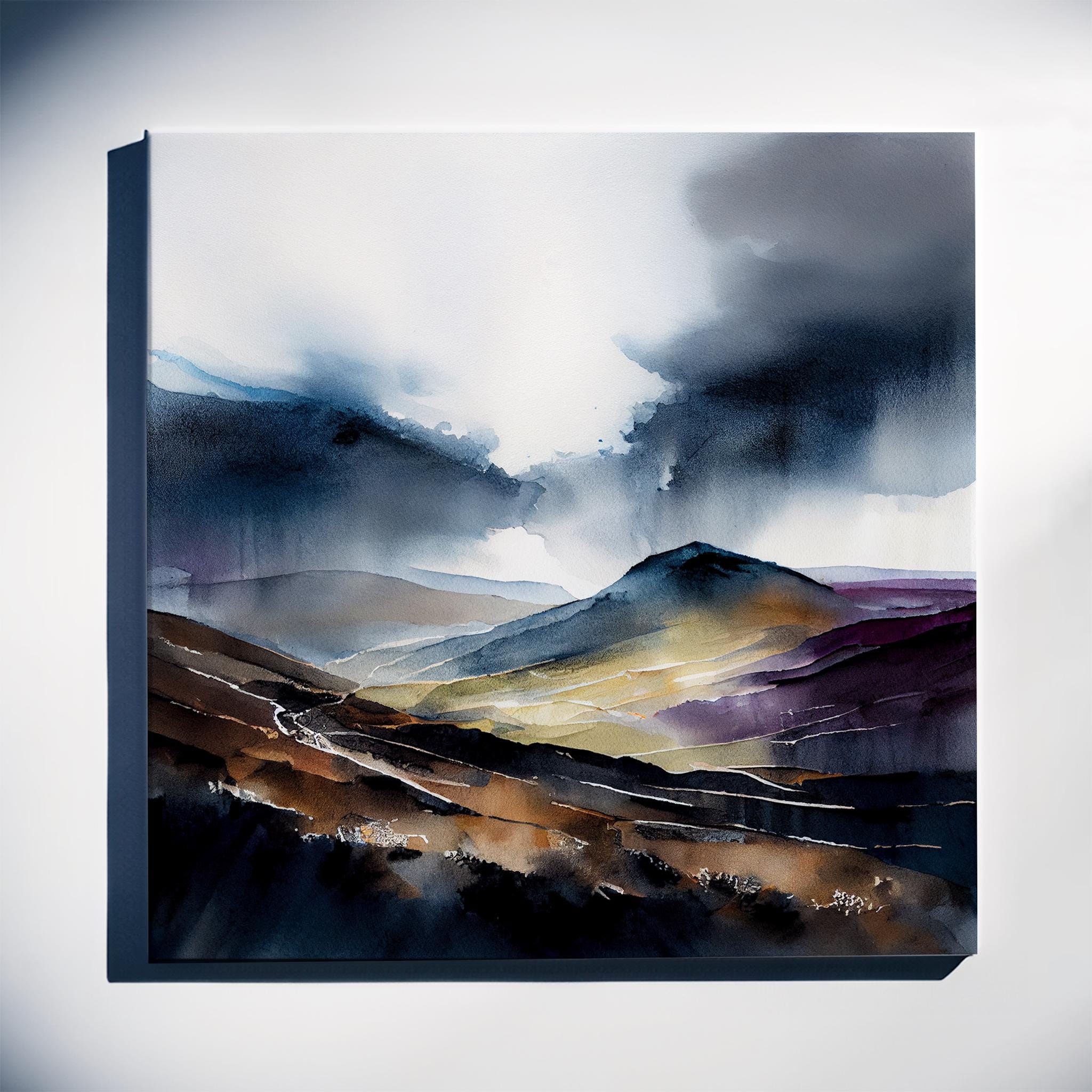 An abstract landscape print of the Peak District. My prints are produced on premium heavyweight watercolour paper or canvas giving them a textured and original painting feel.