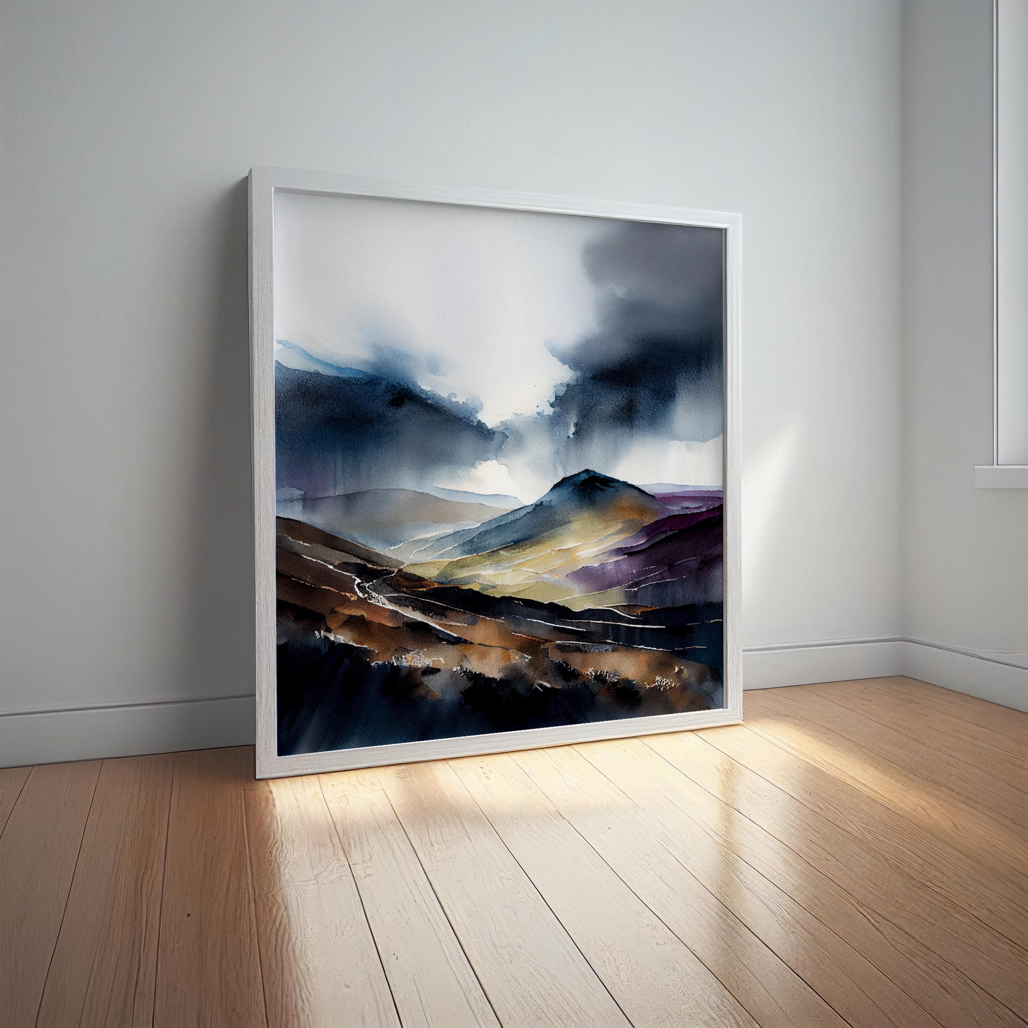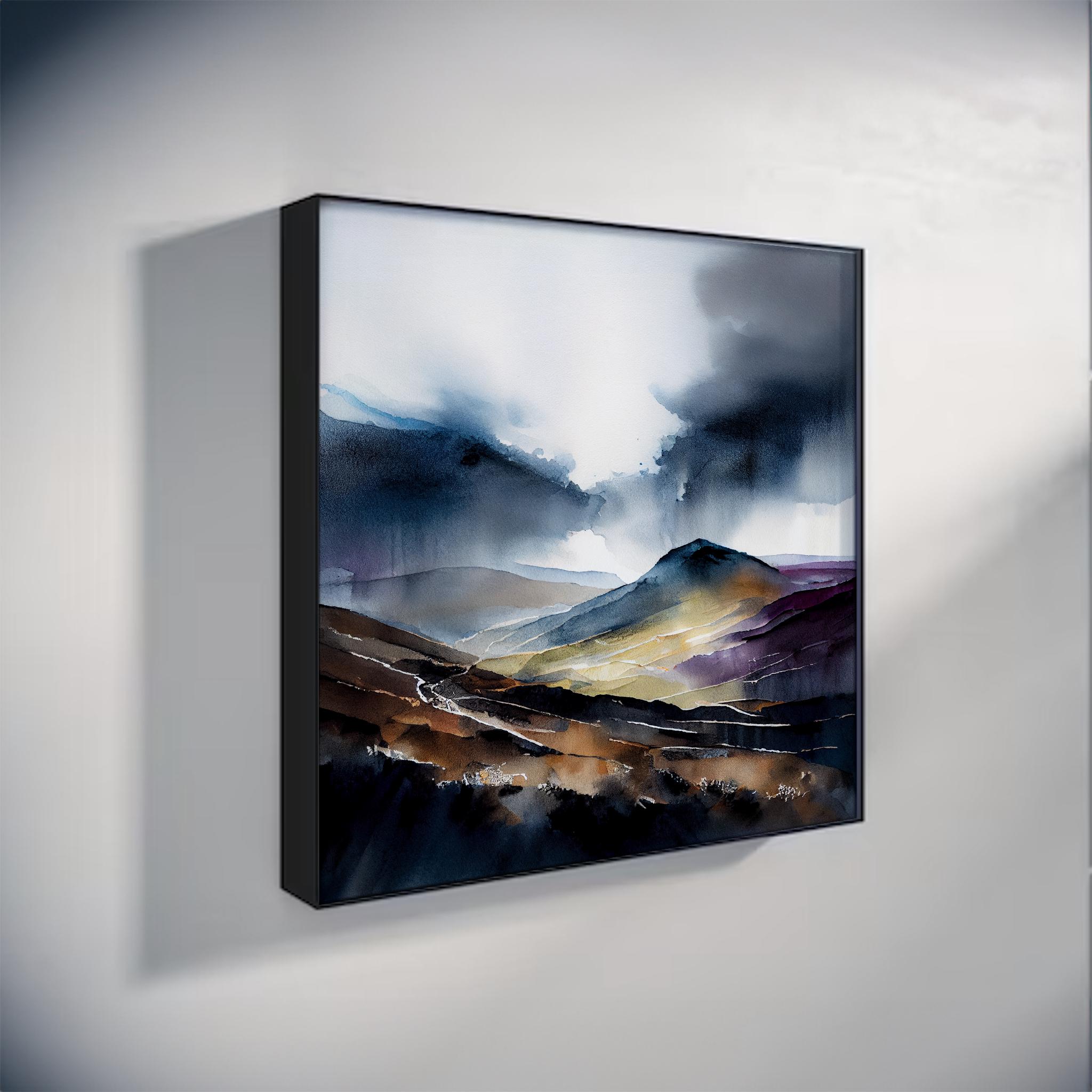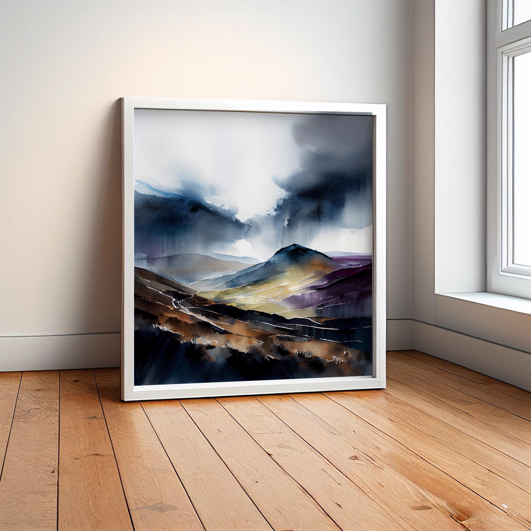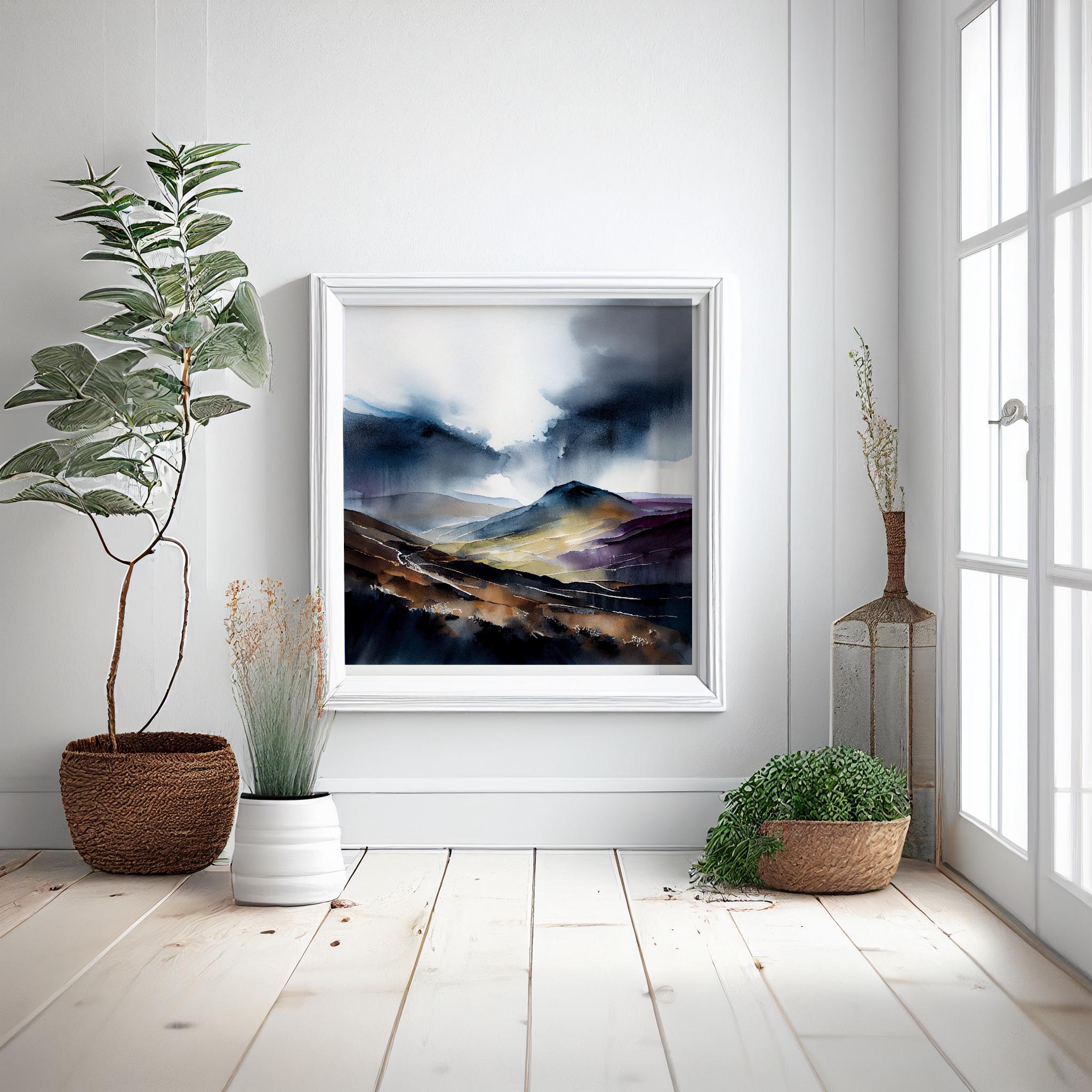 An abstract landscape print of the Peak District. My prints are produced on premium heavyweight watercolour paper or canvas giving them a textured and original painting feel.