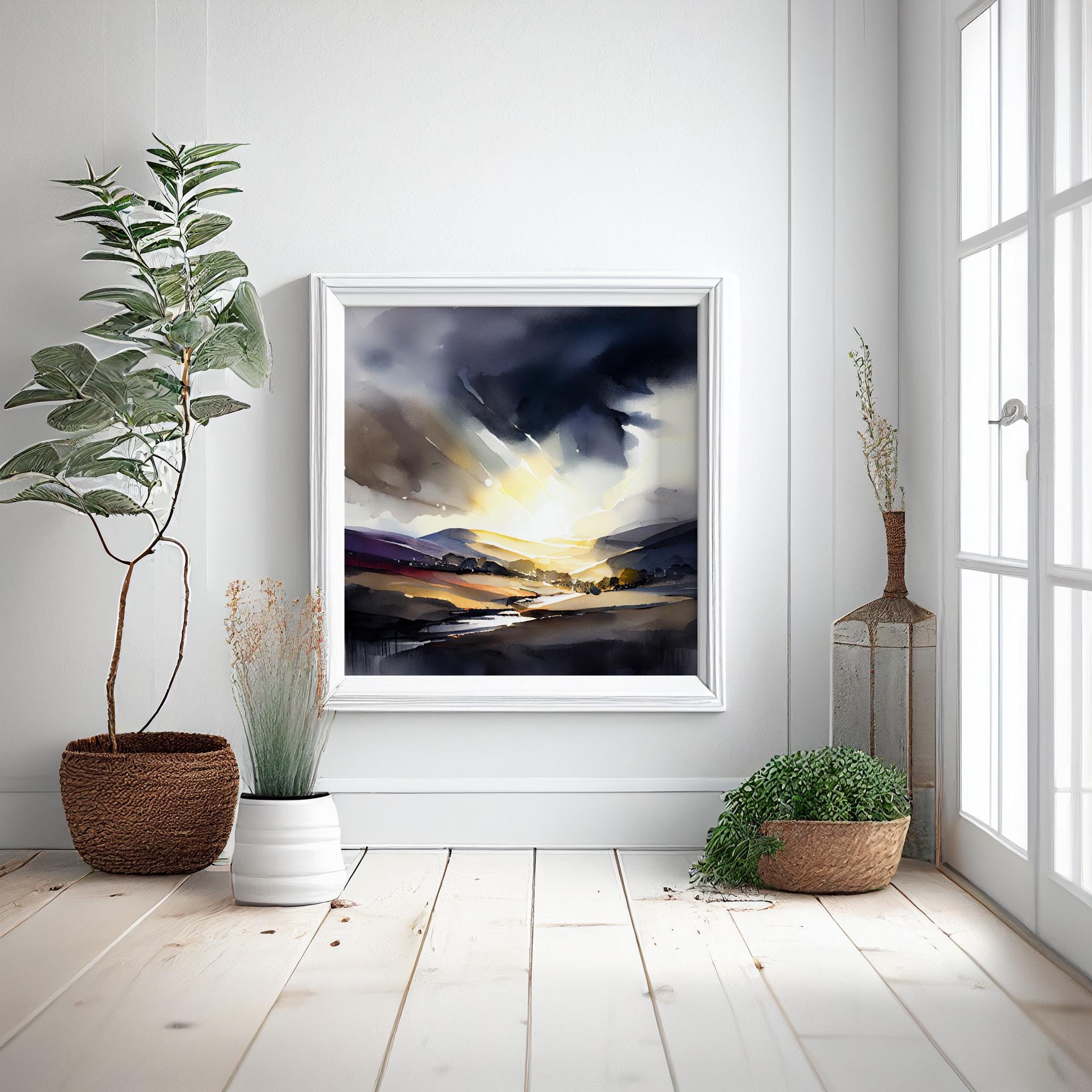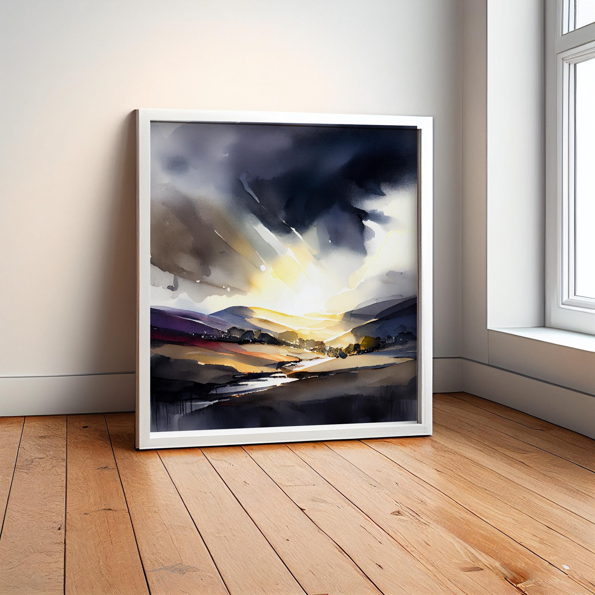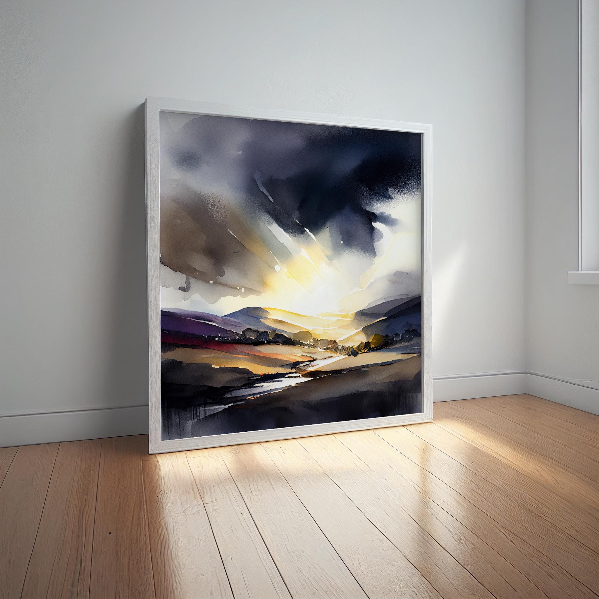 An abstract landscape print of the Peak District. My prints are produced on premium heavyweight watercolour paper or canvas giving them a textured and original painting feel.
