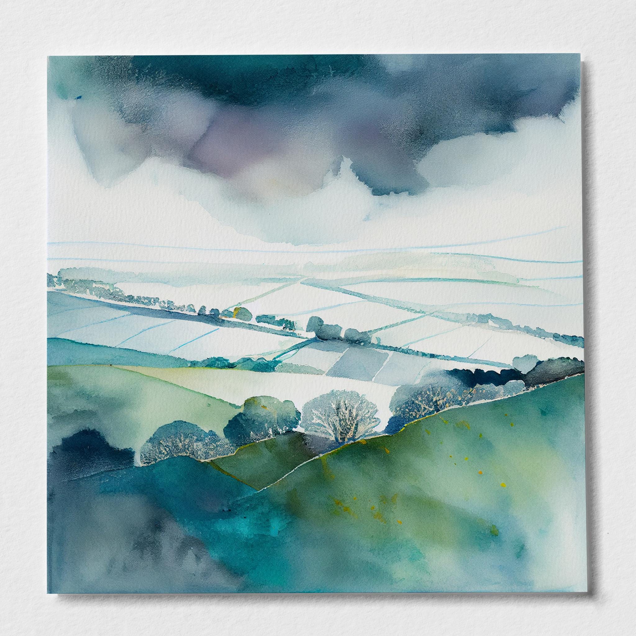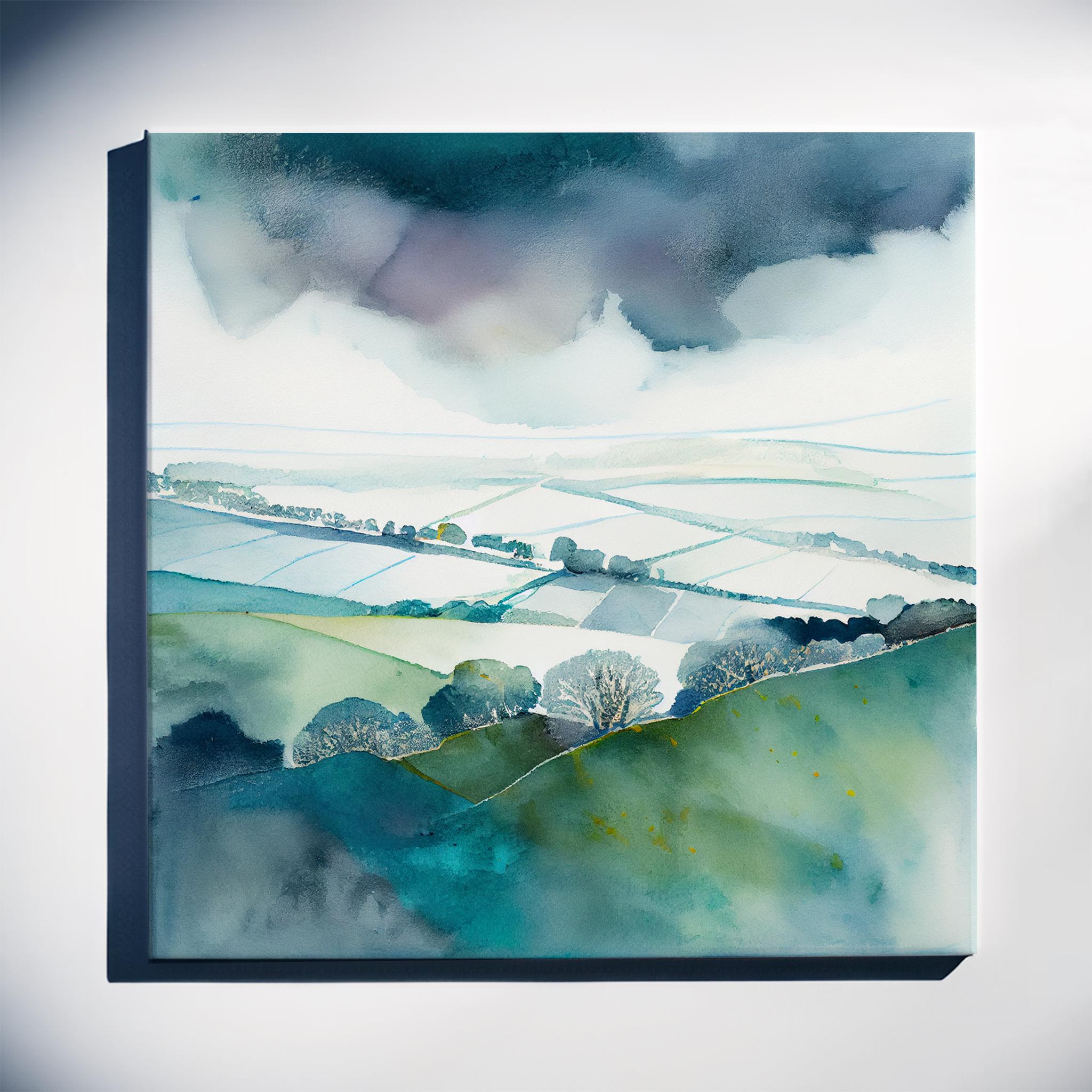 Southdowns National Park Abstract Landscape. An abstract landscape print of the South Downs Painting. These high-quality prints are produced on premium heavyweight watercolour paper or canvas, giving them a textured and authentic feel. The vibrant colours, broad brushstrokes and intricate details of the painting are sure to make a statement in any room. An ideal gift for any nature lover, or as a treat for yourself.