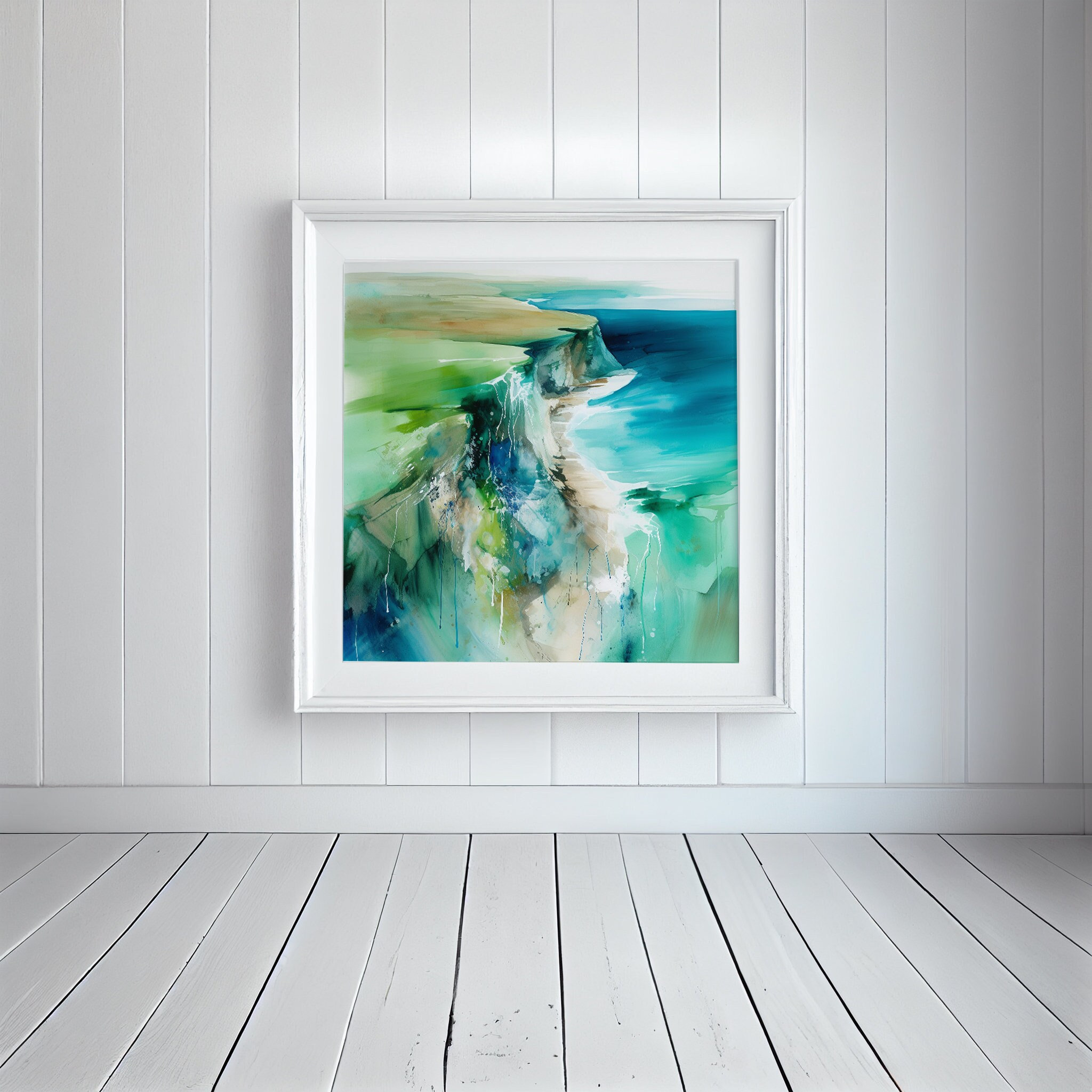 Birling Gap Painting - Southdowns Abstract Landscape Print. An abstract landscape print of Beachy Head Cliffs and the Sea. My high-quality prints are produced on premium heavyweight watercolour paper or canvas, giving them a textured and authentic feel. The vibrant colours, broad brushstrokes and intricate details of the painting are sure to make a statement in any room. An ideal gift for any nature lover, or as a treat for yourself.