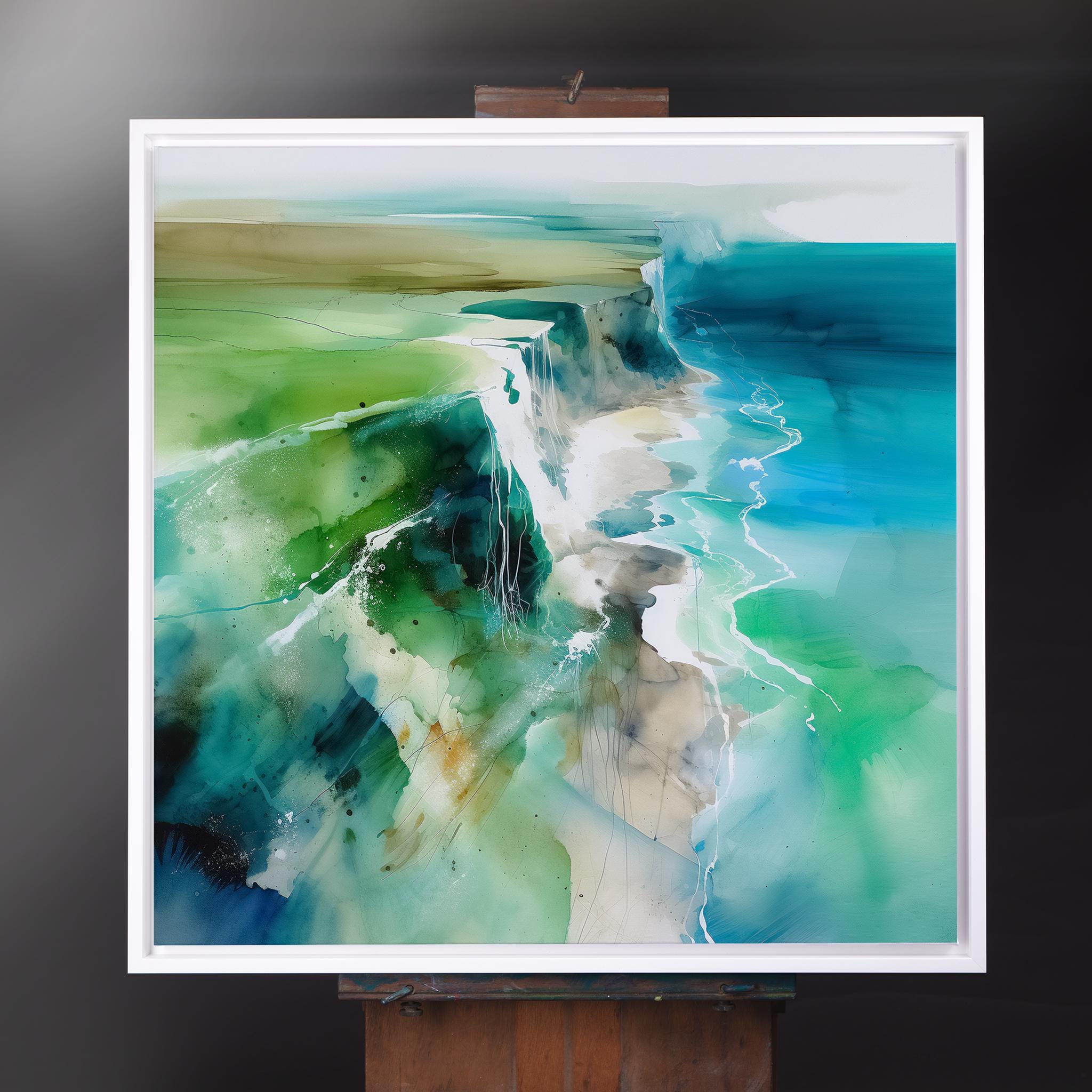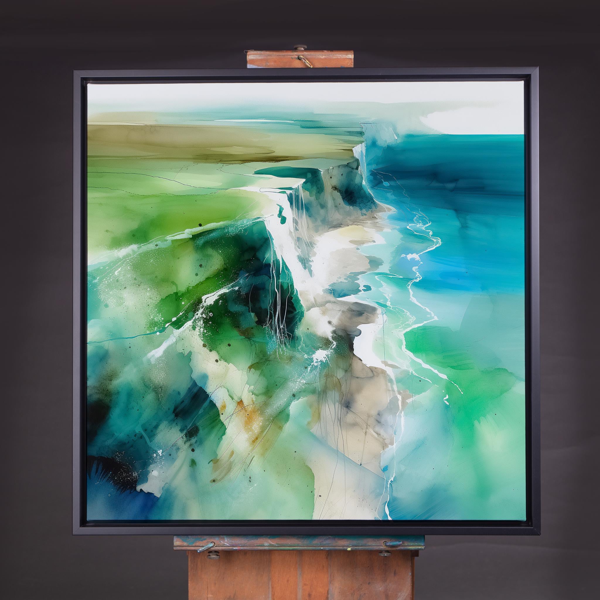 Abstract Seascape of Birling Gap. A dramatic abstract landscape print of the original Ocean Painting. My prints are produced on premium heavyweight watercolour or canvas paper, giving them a textured and authentic feel. The vibrant colours, broad brushstrokes and intricate details of the painting are sure to make a statement in any room. An ideal gift for any nature lover, or as a treat for yourself.