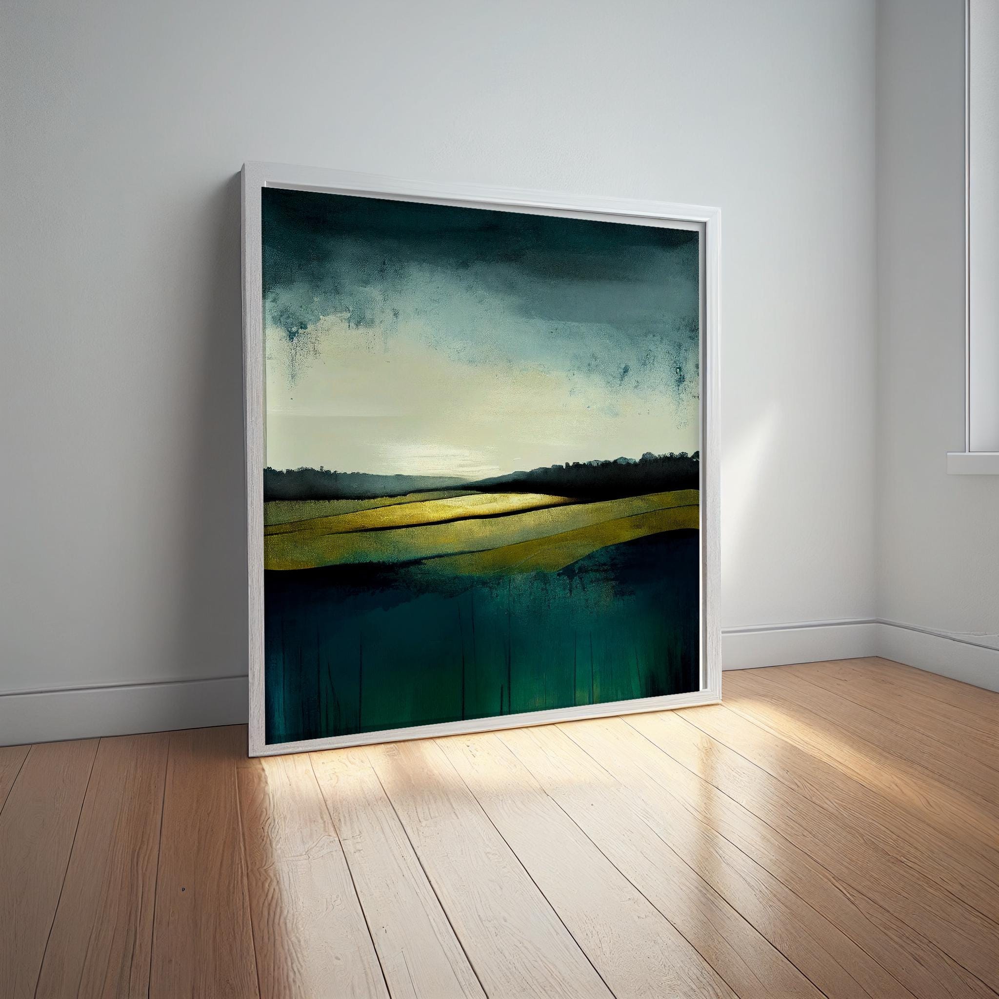 Southdowns National Park Wheat field. Abstract Landscape Print. An abstract landscape print of the South Downs National Park with A golden wheat field. These high-quality prints are produced on premium heavyweight watercolour paper or canvas, giving them a textured and original painting feel. The vibrant colours, broad brushstrokes and intricate details of the painting are sure to make a statement in any room. An ideal gift for any nature lover, or as a treat for yourself.