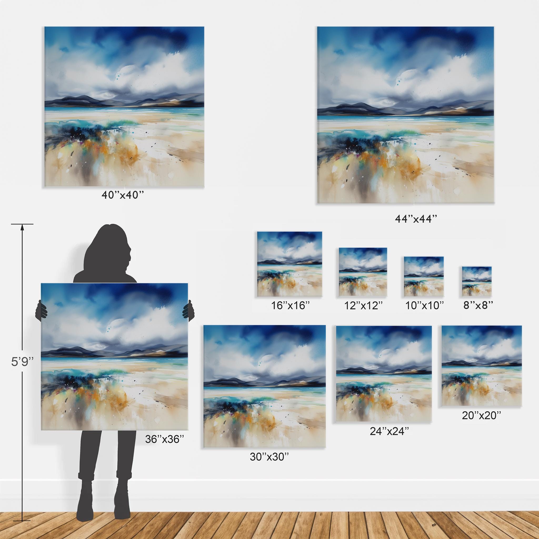 Canvas: Archival Giclee Print on high quality textured 400g canvas and stretched over a wooden frame ready to hang.