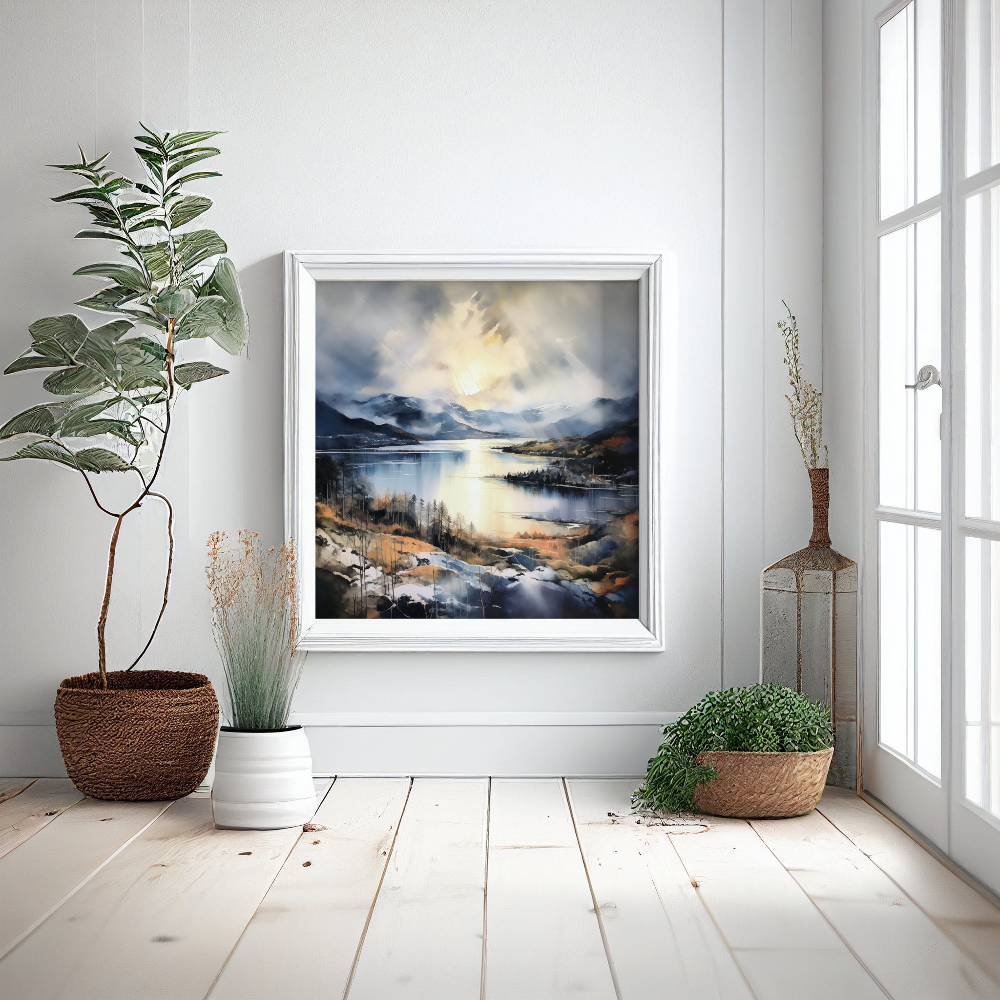 Lake District Abstract Landscape Watercolour Painting. An abstract landscape print of the the Lake District. These high-quality prints are produced on premium heavyweight watercolour paper, giving them a textured and authentic feel. The vibrant colours, broad brushstrokes and intricate details of the painting are sure to make a statement in any room. An ideal gift for any nature lover, or as a treat for yourself.