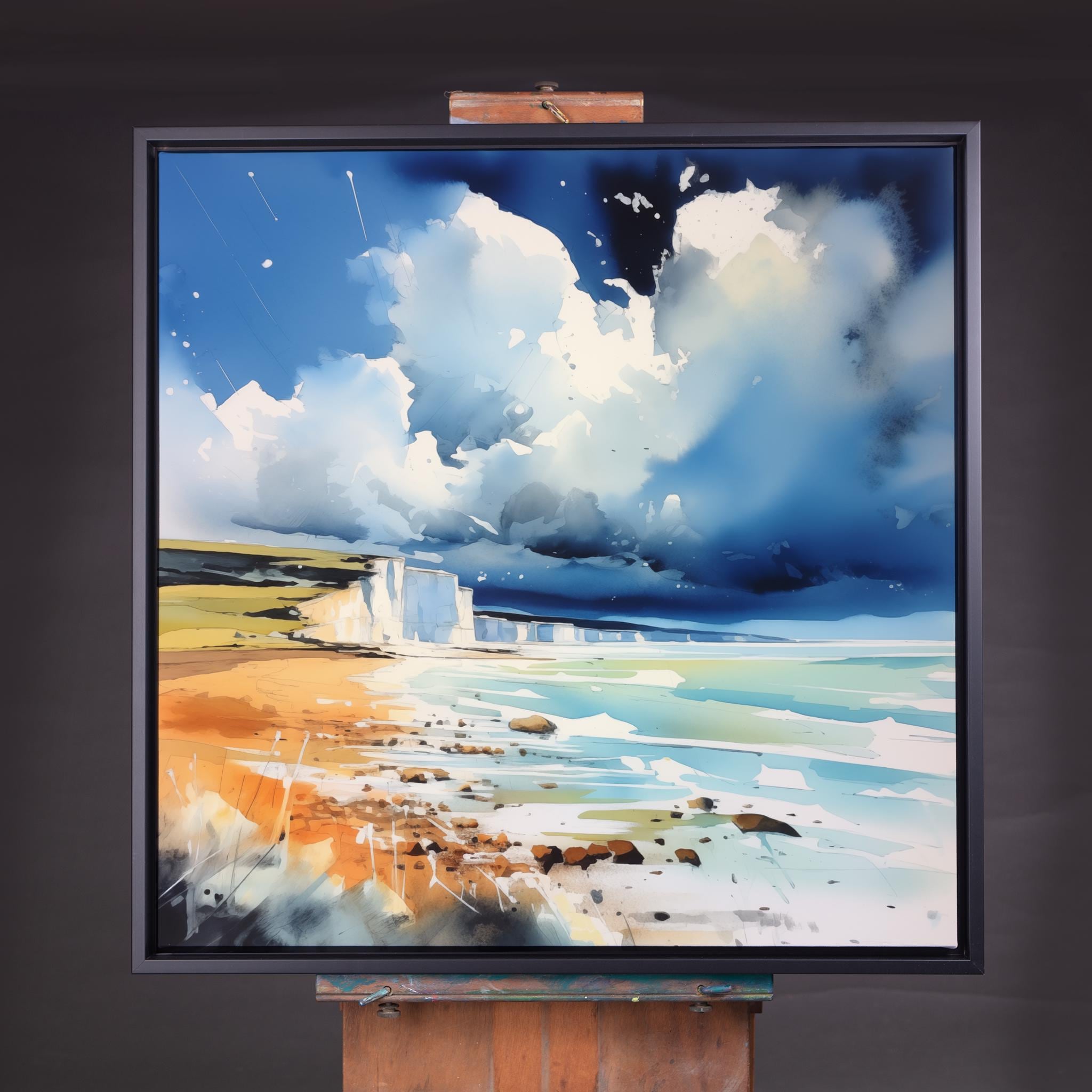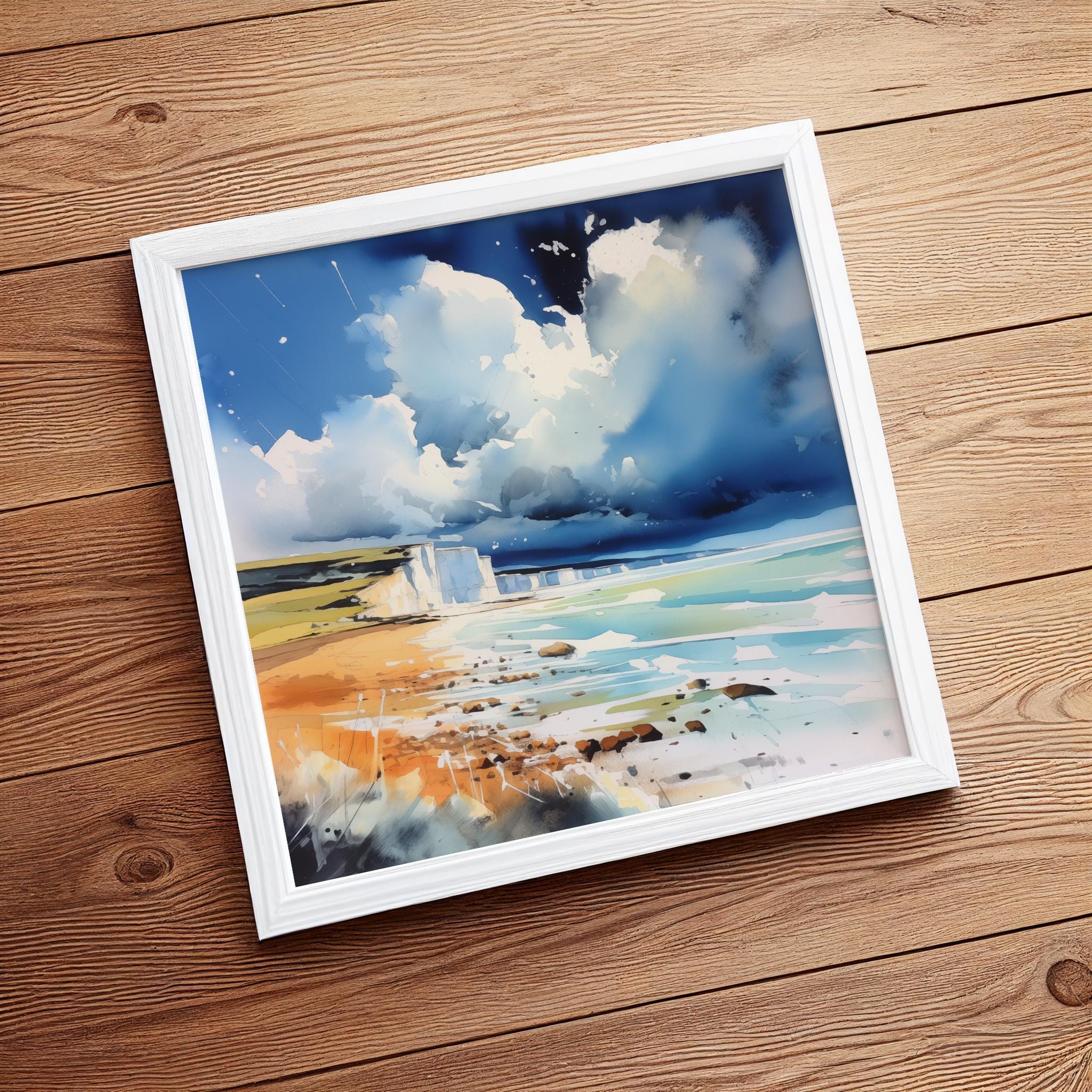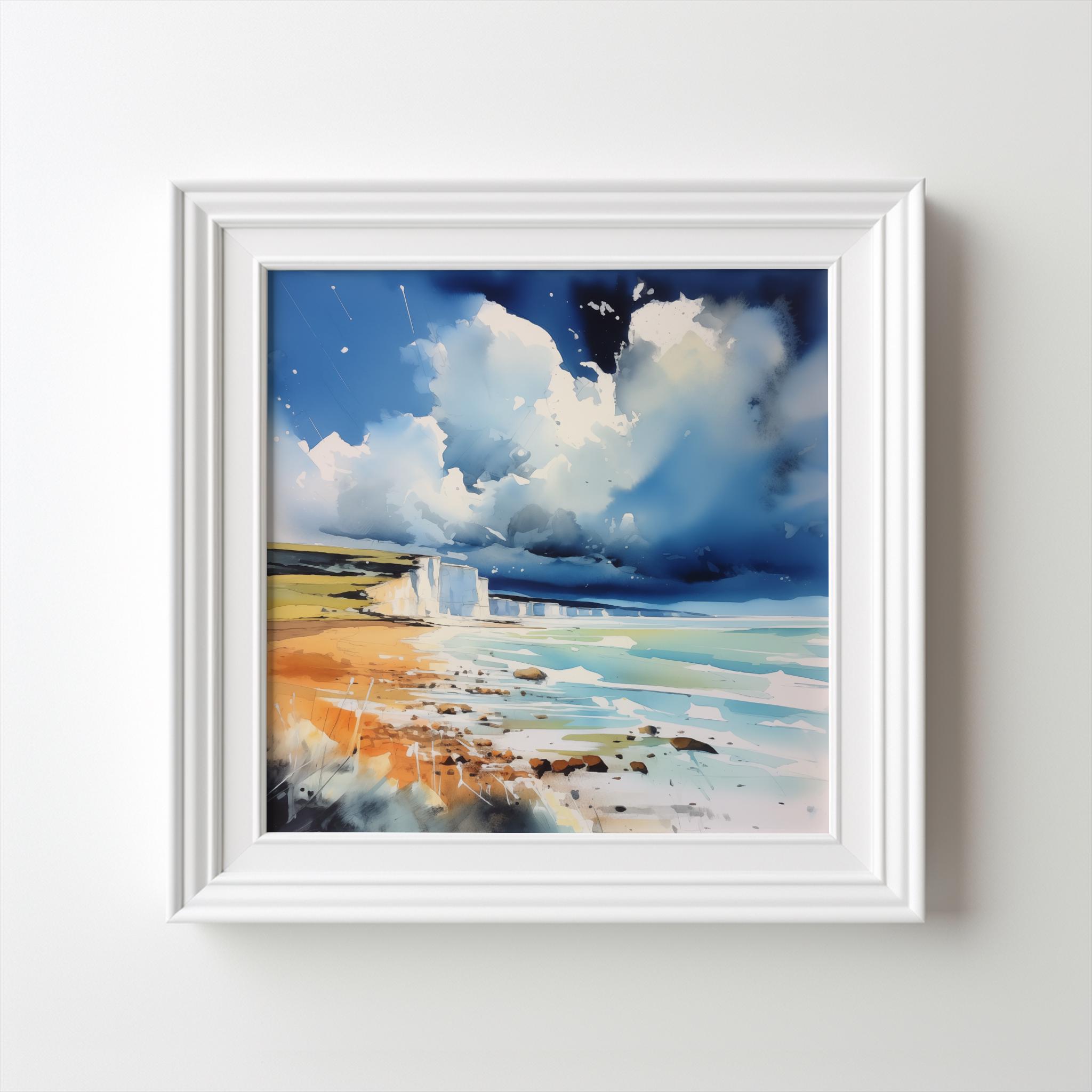 An abstract landscape print of white cliffs at Birling Gap. High-quality un framed print produced on premium heavyweight watercolour paper, giving them a textured and authentic feel.