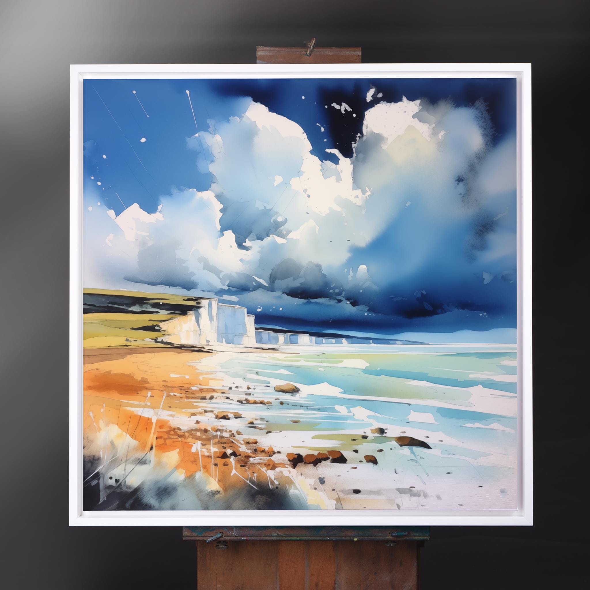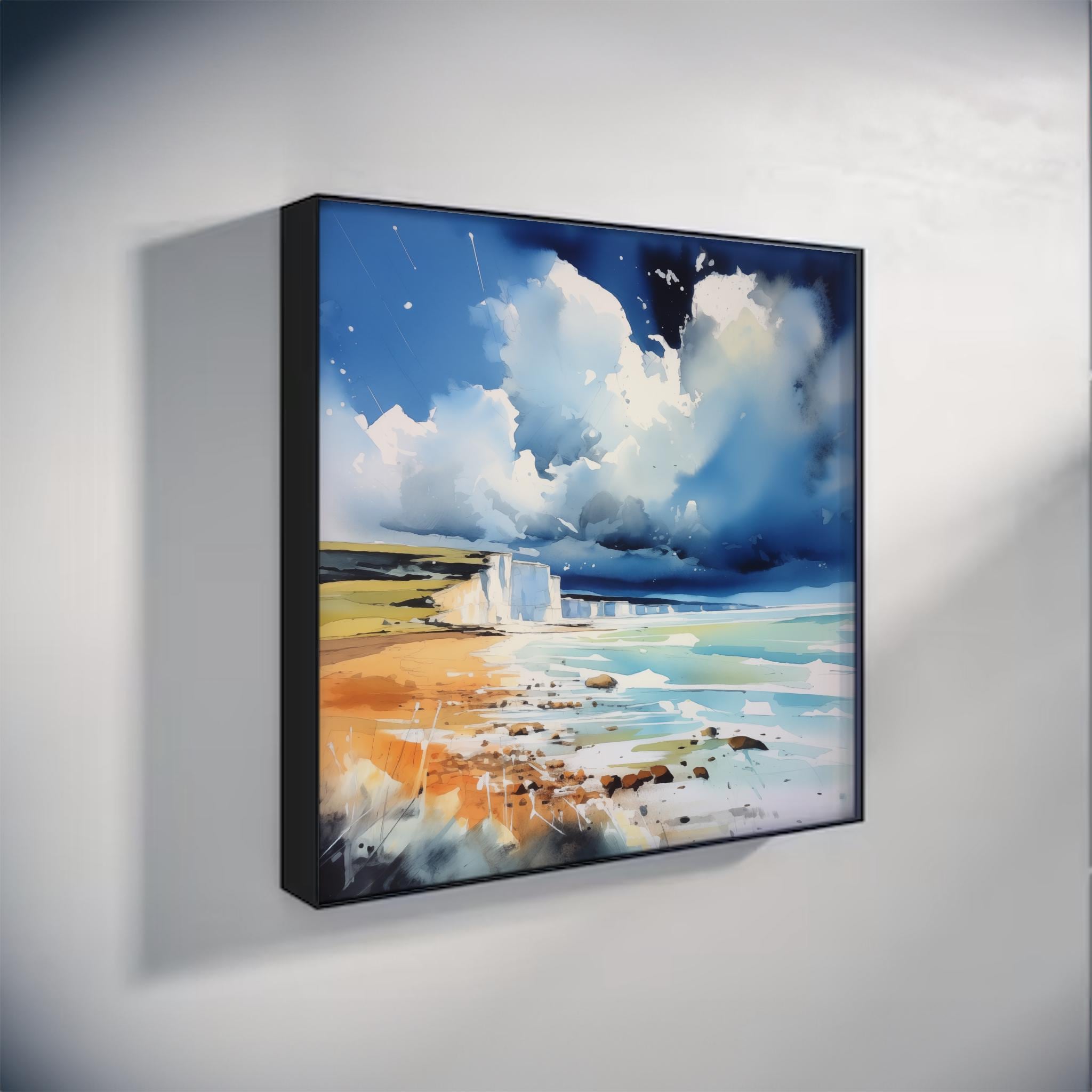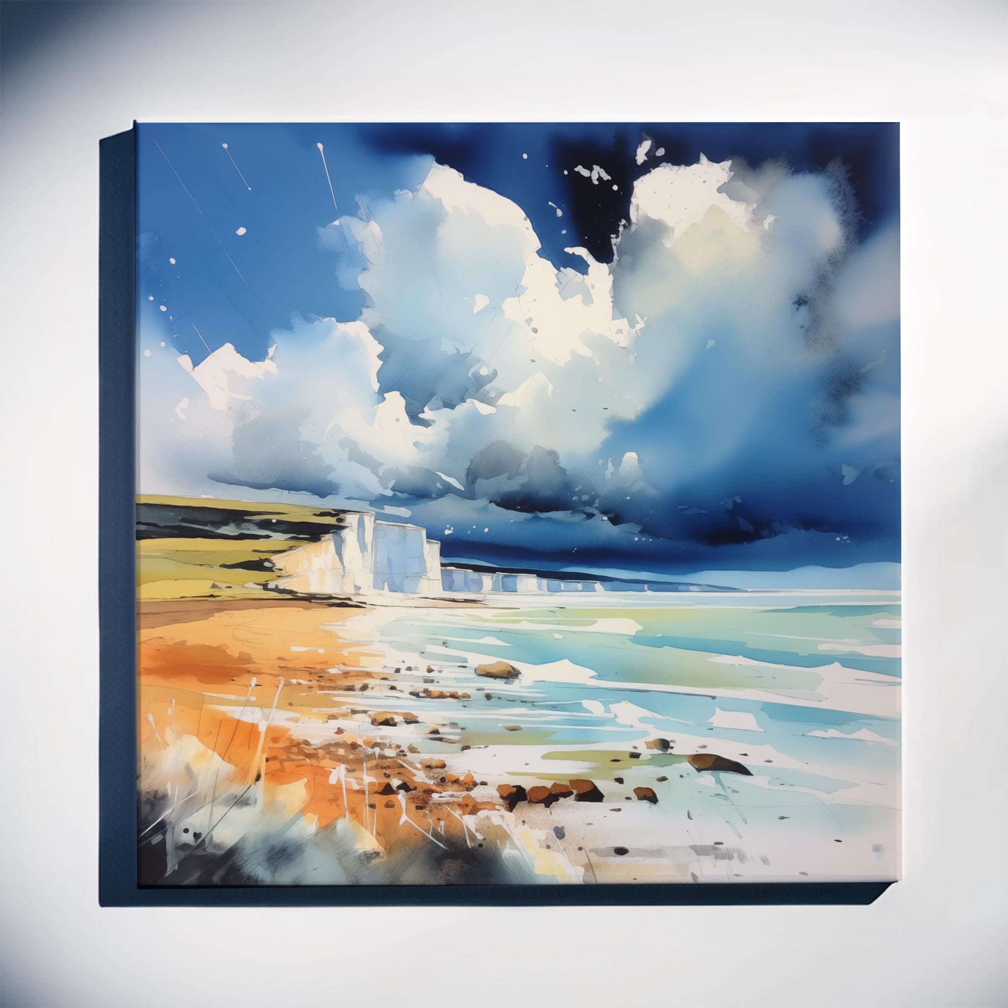 An abstract landscape print of white cliffs at Birling Gap. High-quality un framed print produced on premium heavyweight watercolour paper, giving them a textured and authentic feel.