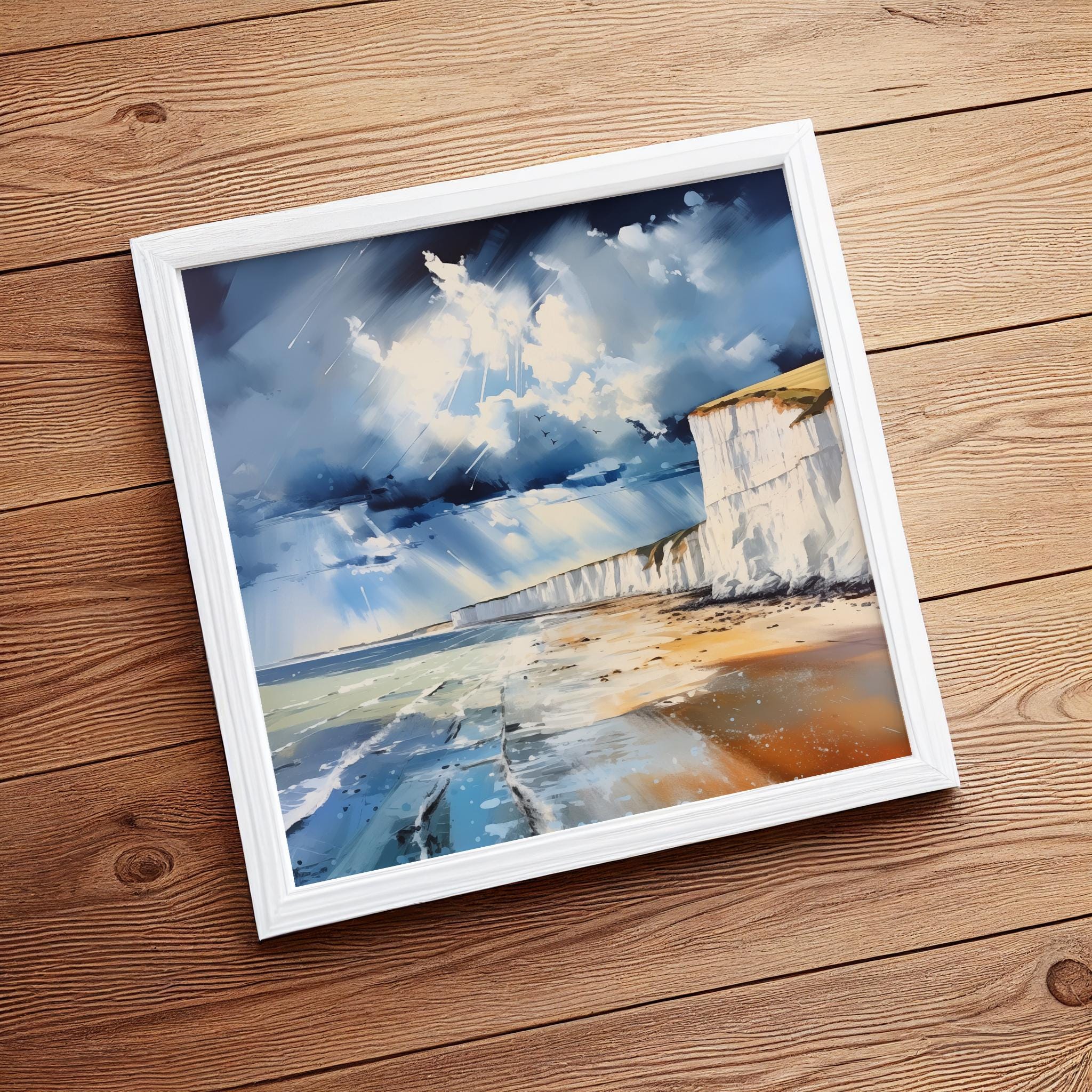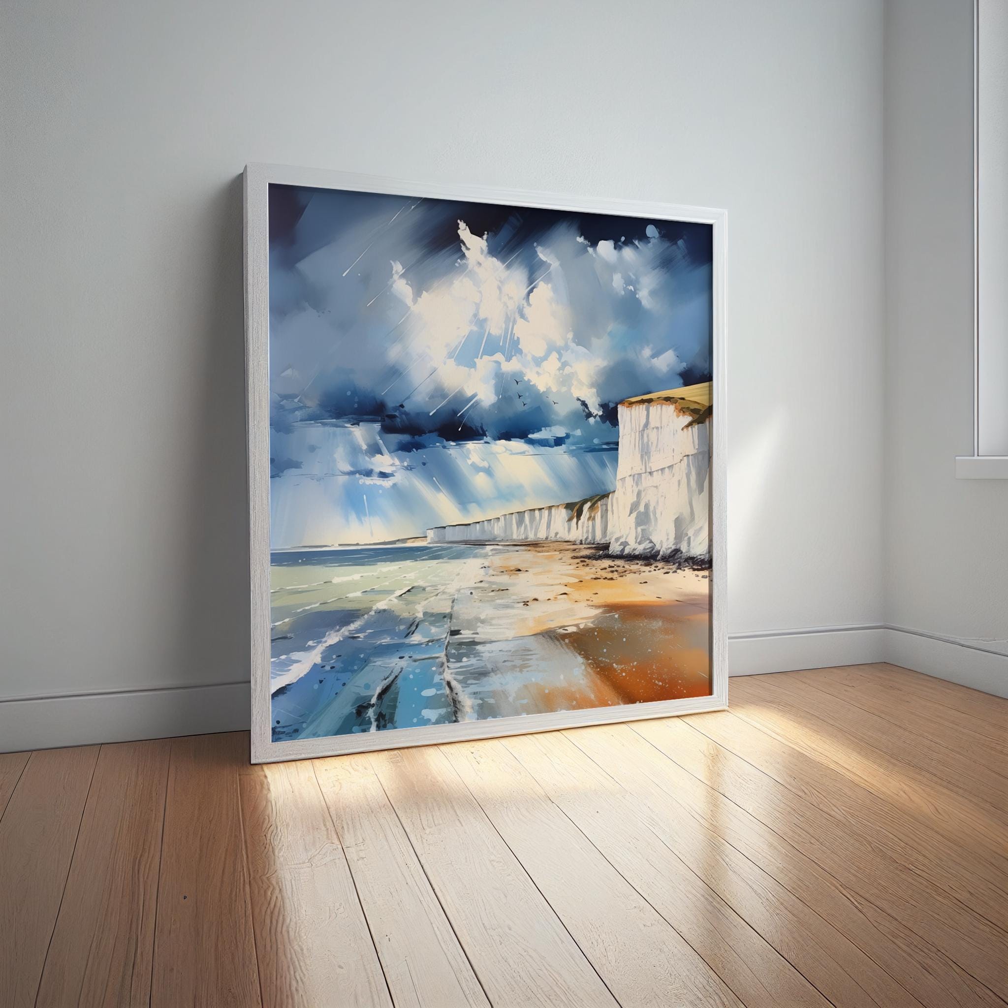 An abstract landscape print of white cliffs at Birling Gap. High-quality prints produced on premium heavyweight watercolour paper and canvas.