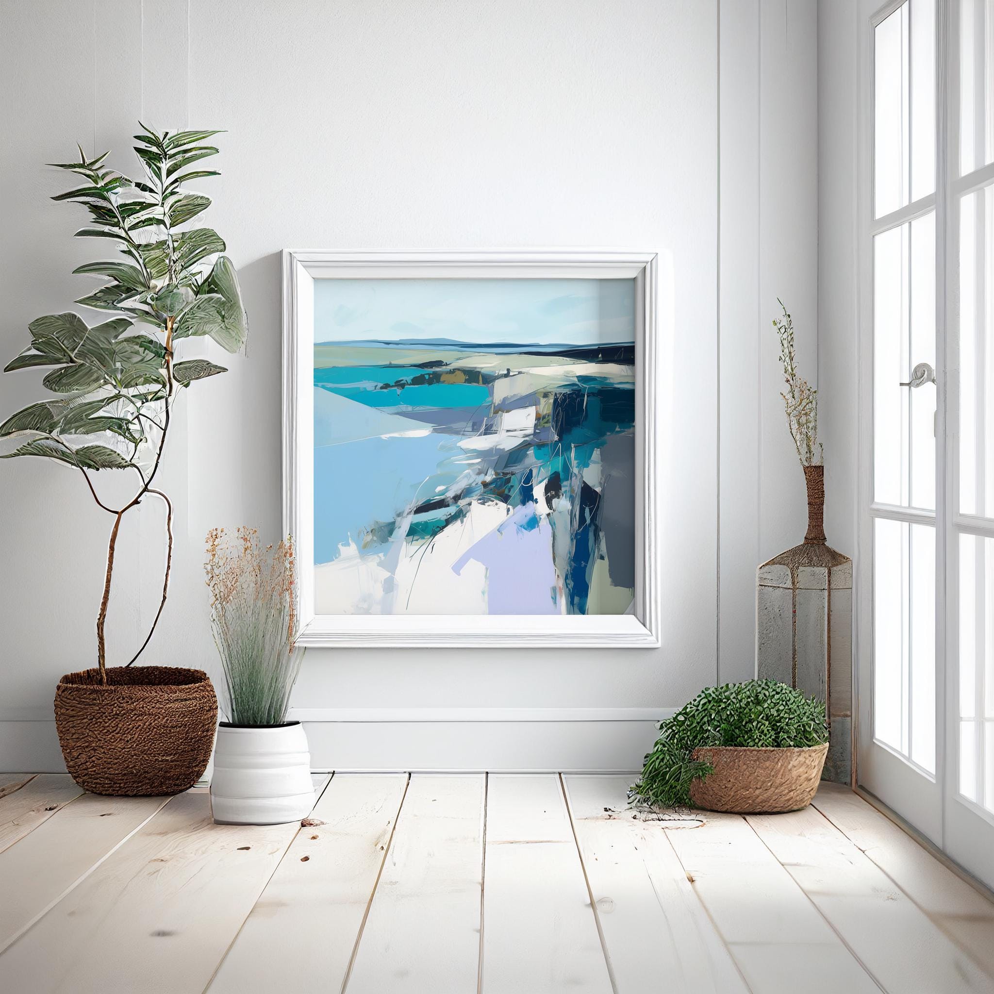 Coastal beach painting print on canvas or watercolour paper. Large Abstract Landscape Print