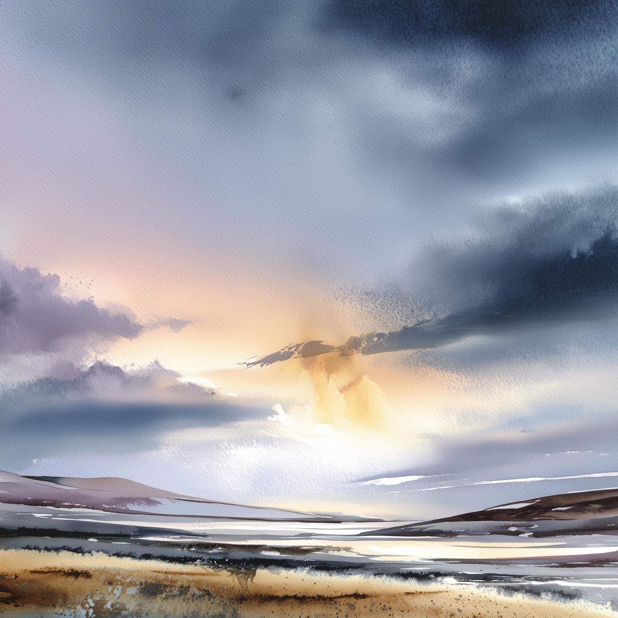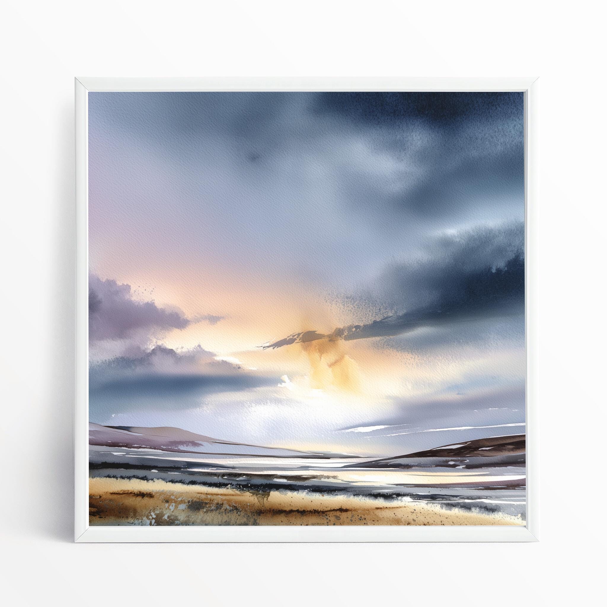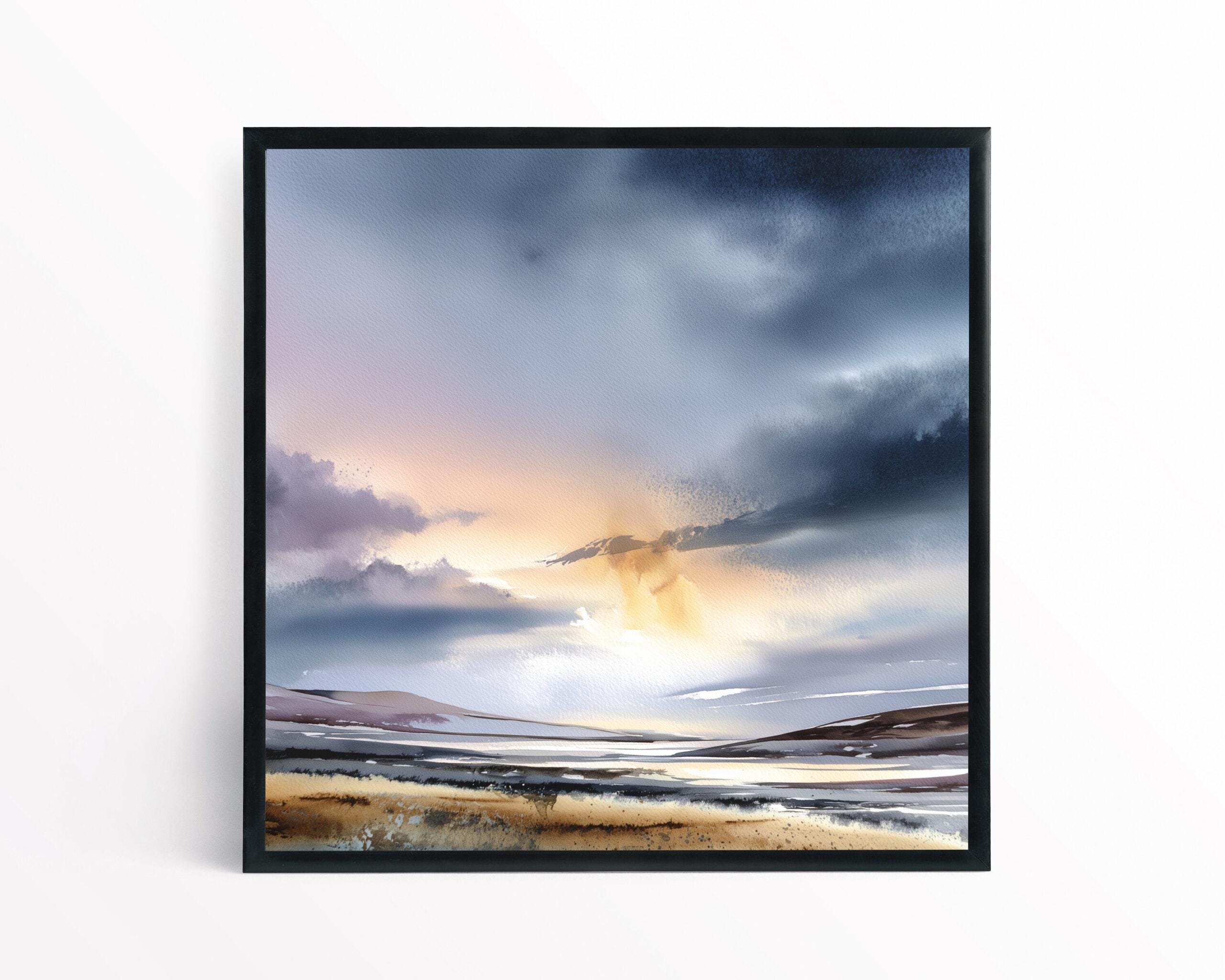 This exquisite artwork captures the ethereal beauty of the Scottish Highlands with a majestic blend of blue and gold accents. The abstract, impressionist style brings the landscape to life, evoking a sense of tranquillity and mystery.