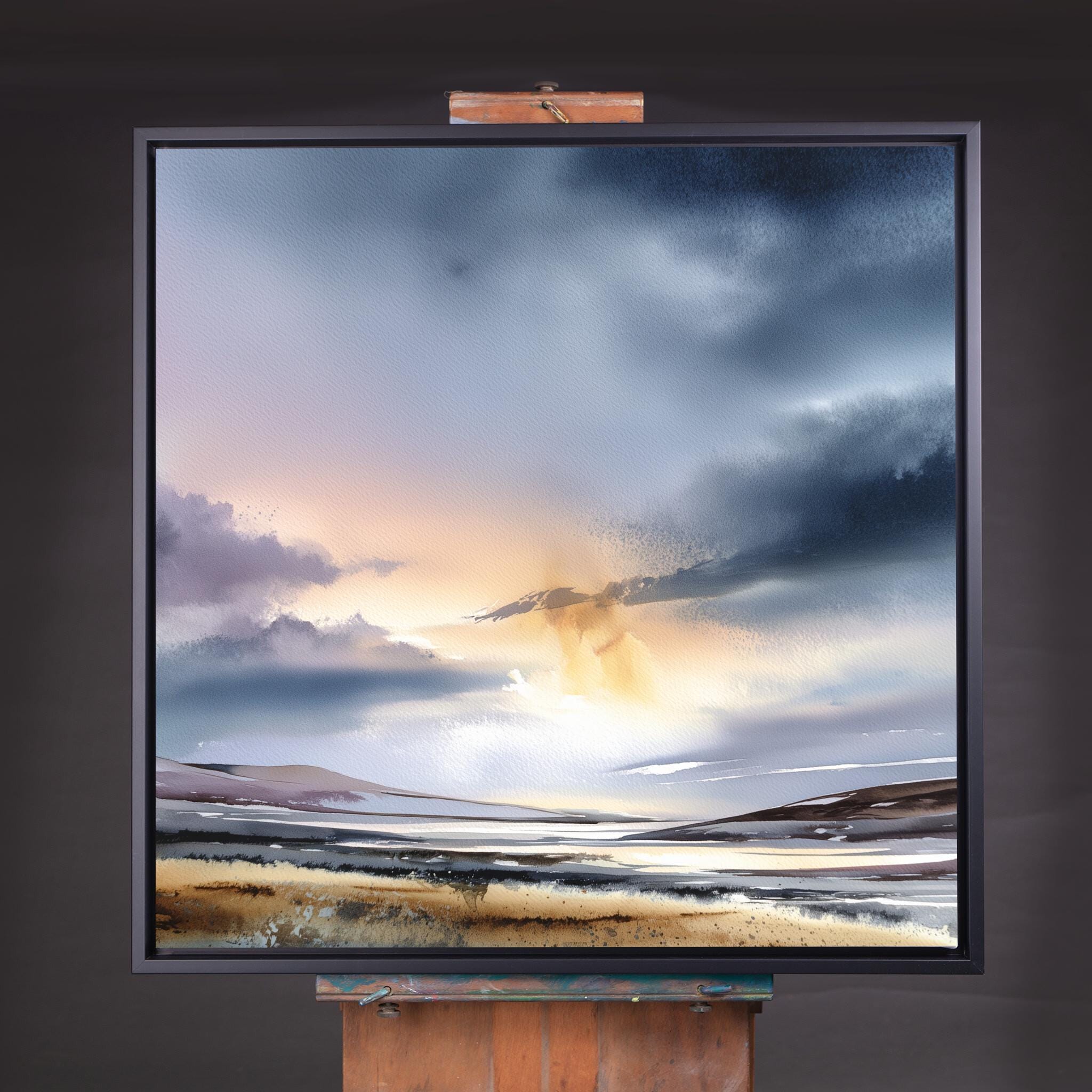 Canvas: Archival Giclee Print on high quality textured 400g canvas and stretched over a wooden frame ready to hang.