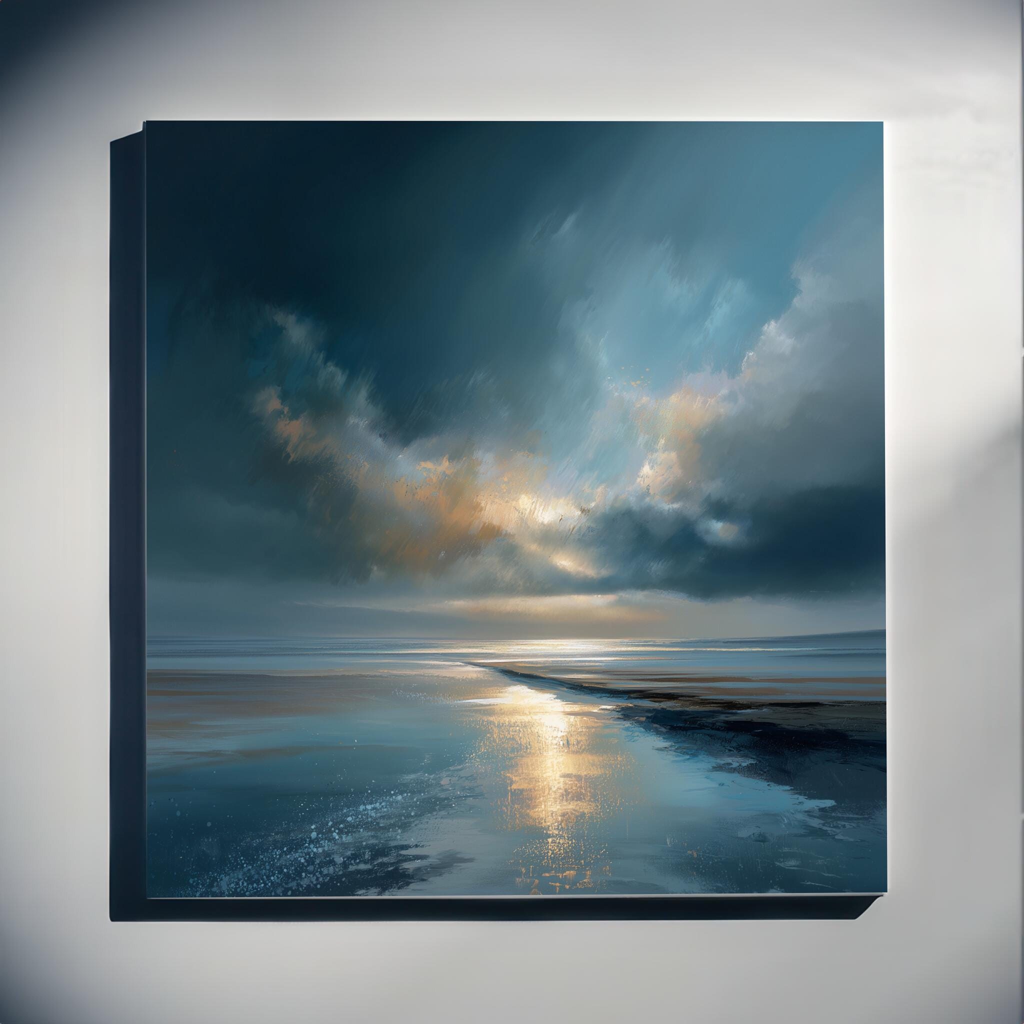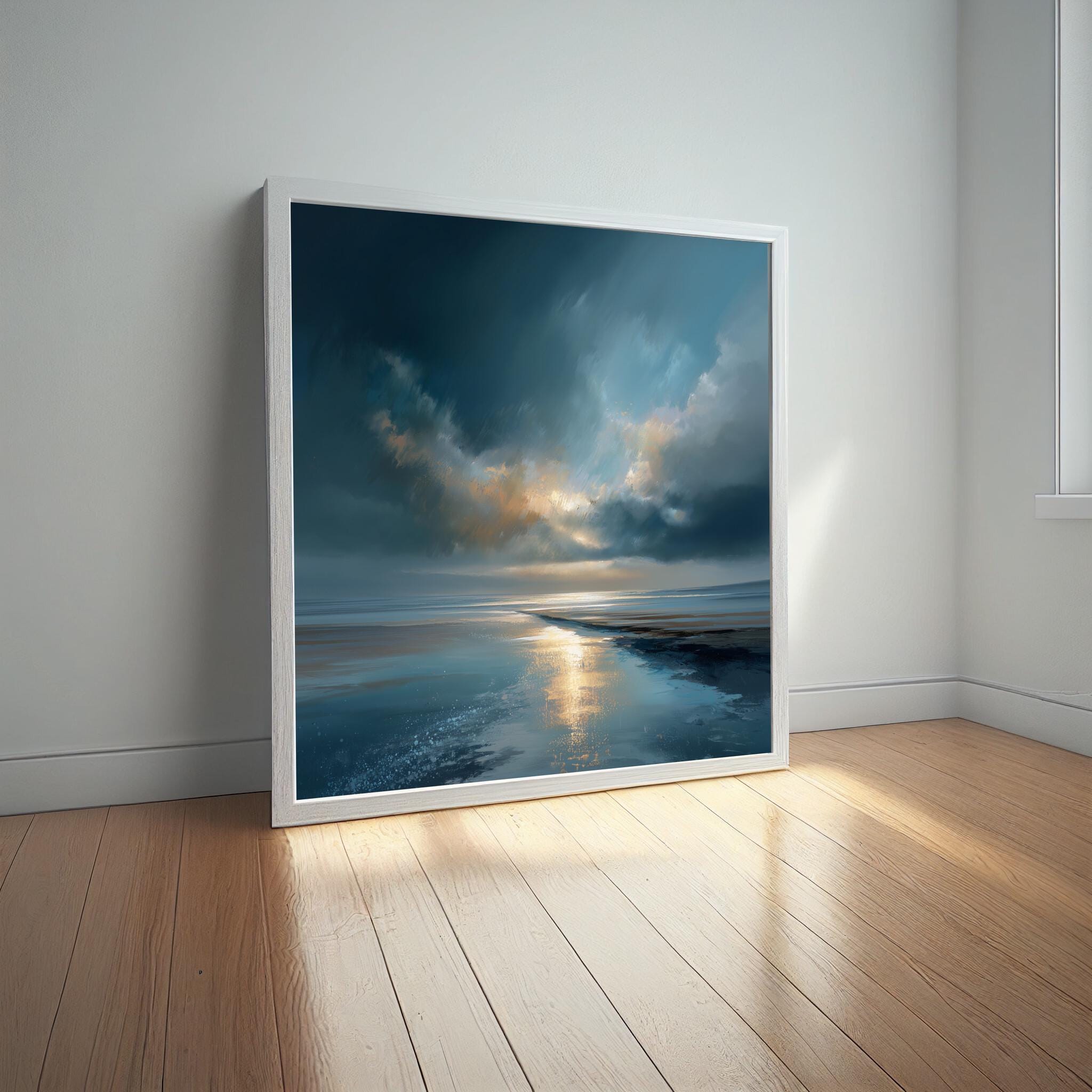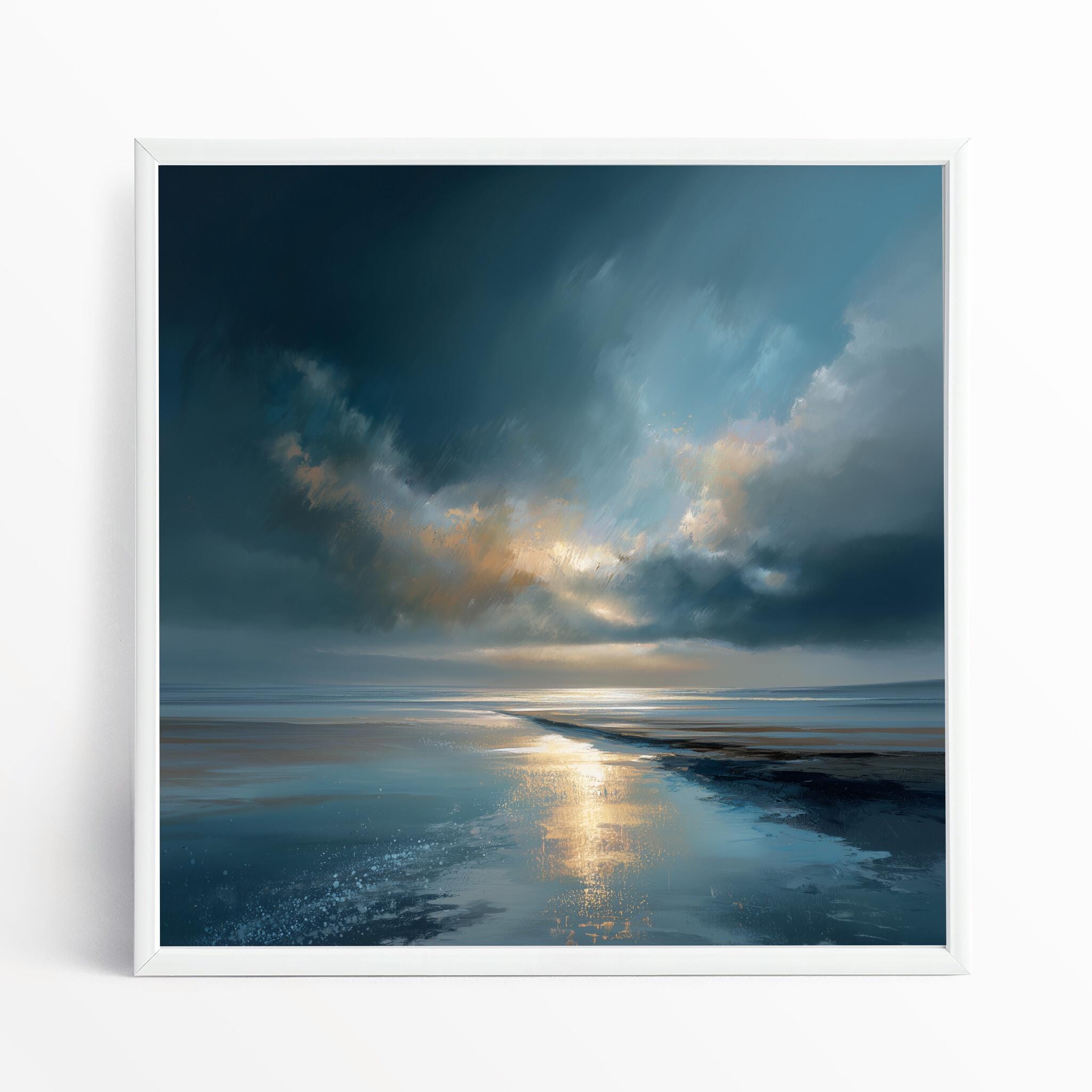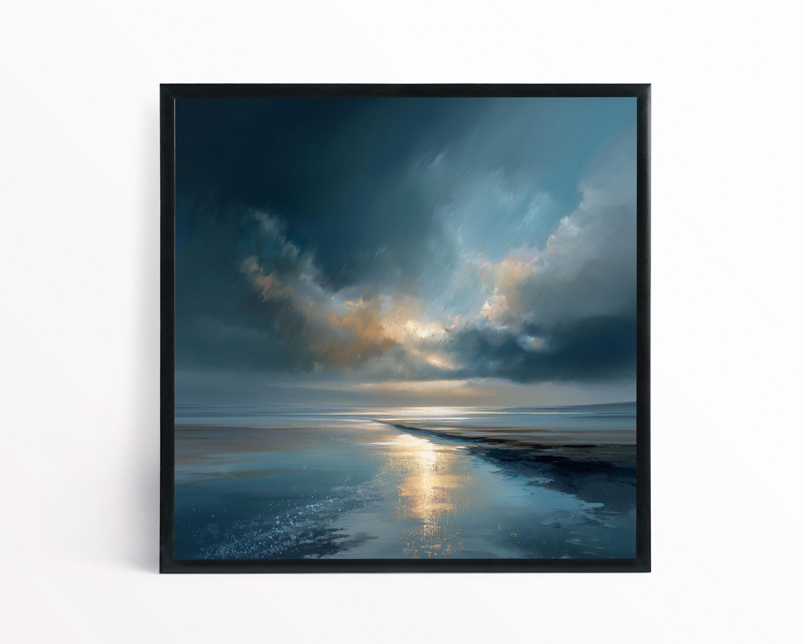 This captivating abstract beach artwork, inspired by the serene shores of Cornwall, blends blue art with warm tones to create a tranquil coastal scene. The fluid strokes and atmospheric quality capture the beauty of the horizon, making it an ideal piece for art lovers who appreciate abstract expression. Perfect for your living room or bedroom decor, this piece brings a sense of calm to any space. Whether in a home office or as wall art for your living room, it delivers a touch of elegance. It makes a thoughtful housewarming gift or a perfect addition for those seeking home decor that reflects the beauty of nature. Available as stunning canvas prints, it is designed to enrich your space with its artistic charm.