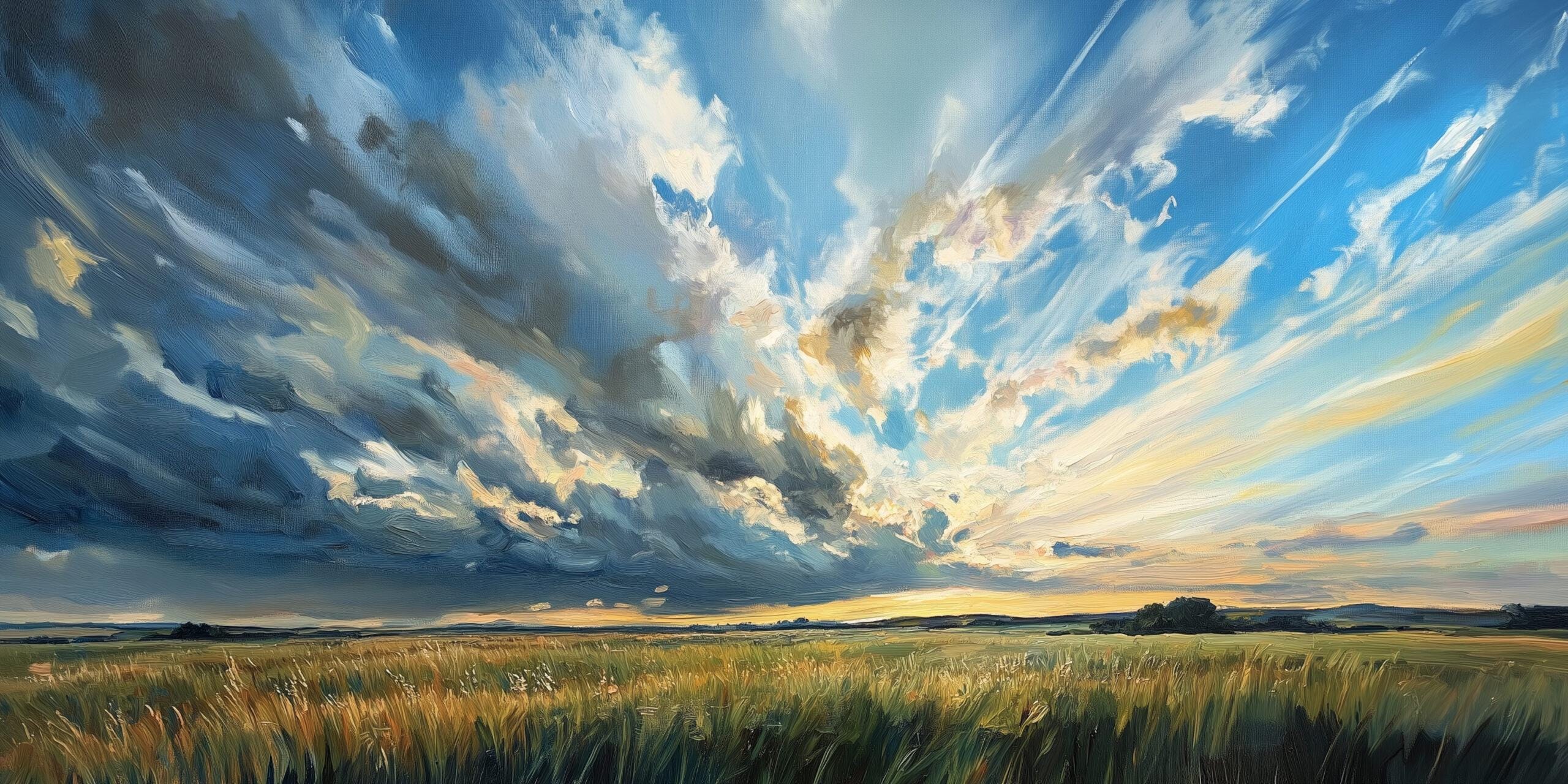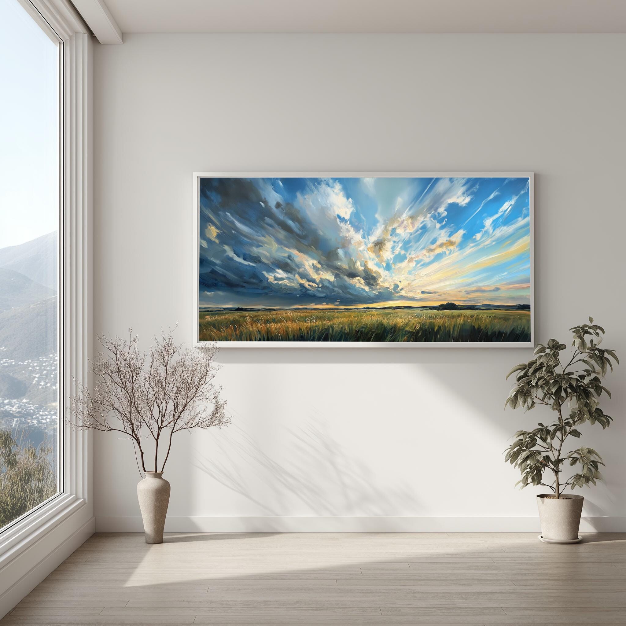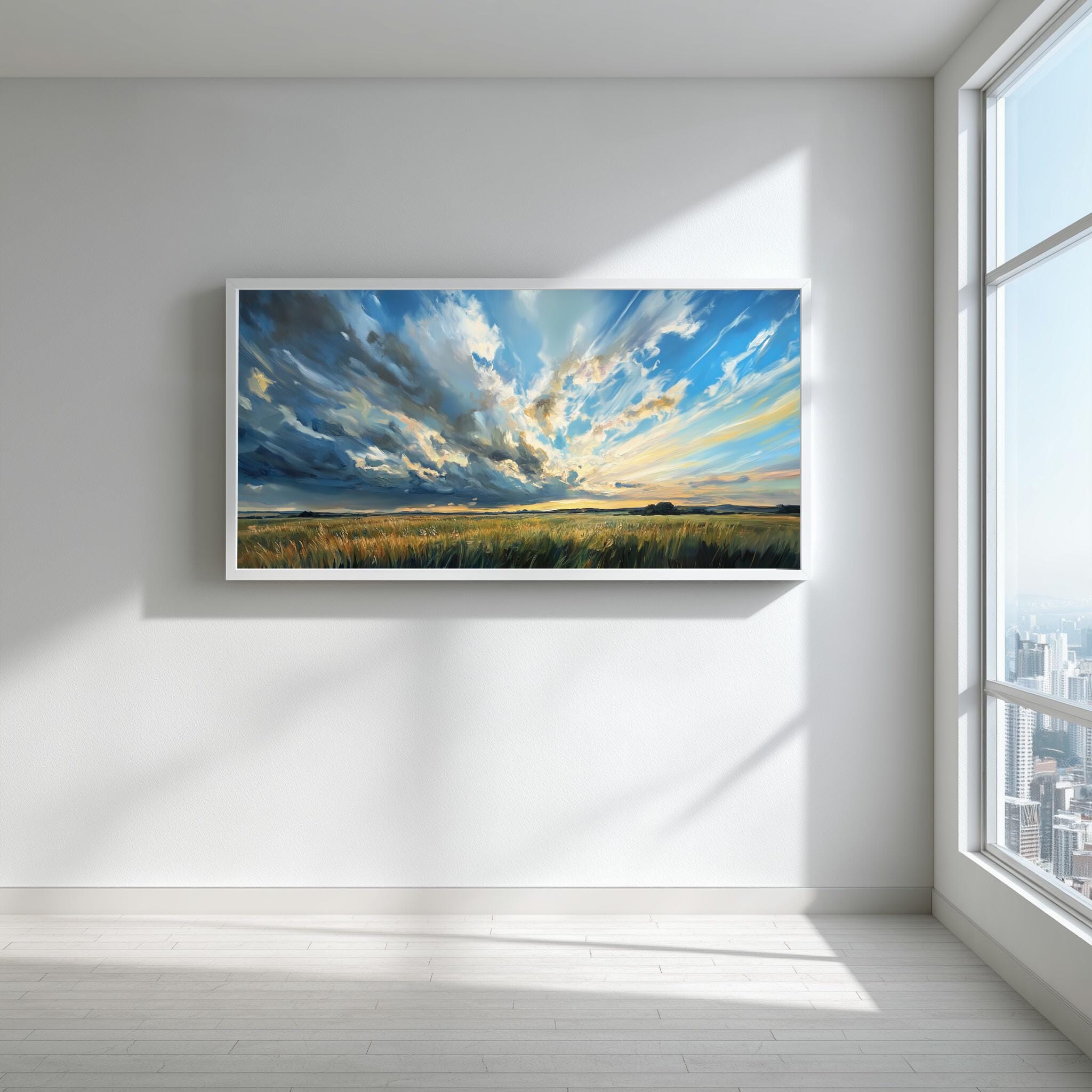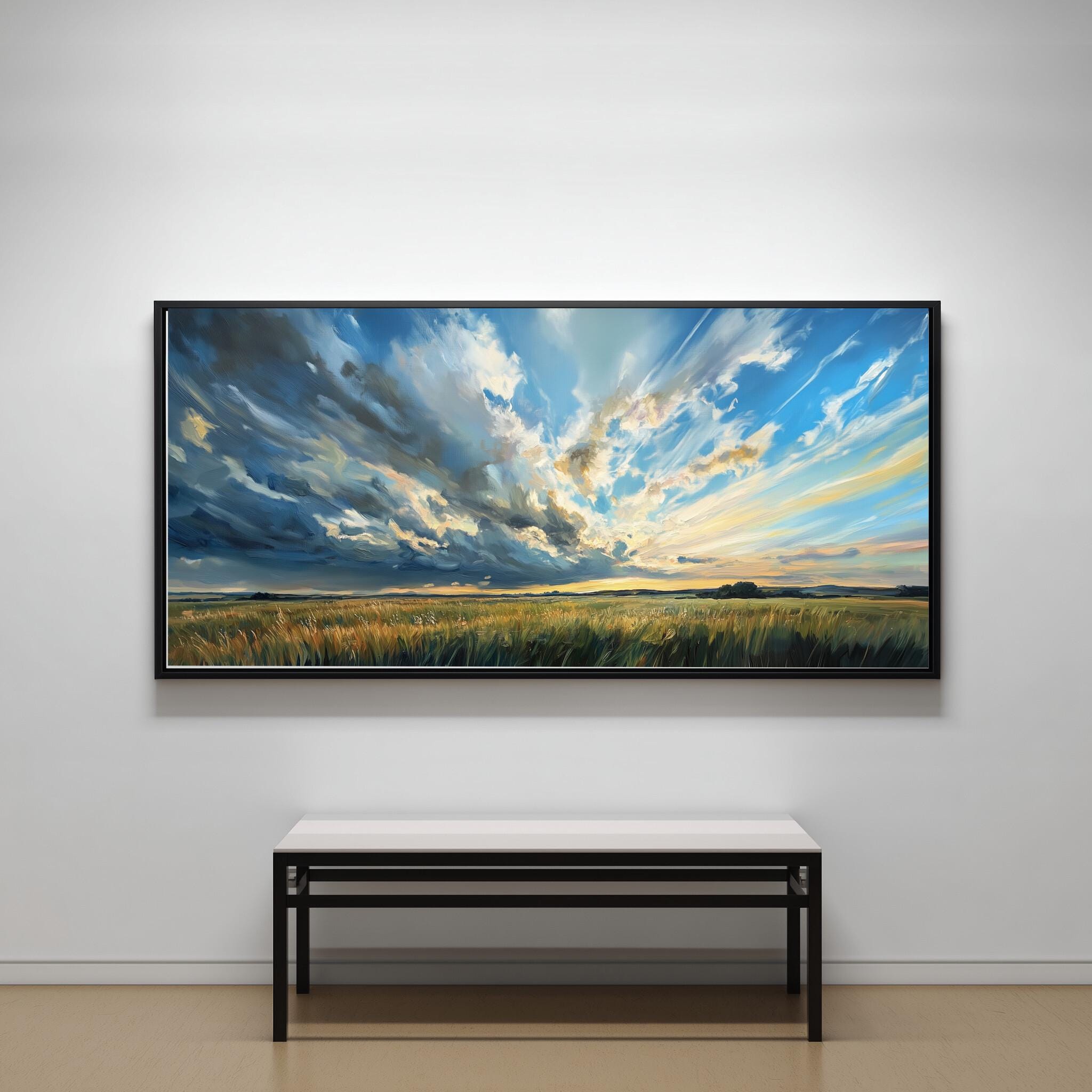 This stunning impressionist artwork captures the essence of a Sussex wheat field beneath an expansive and dynamic blue sky. With warm tones and subtle yellow accents, the painting conveys a sense of serenity and natural beauty. Perfectly suited for those who appreciate landscapes and the charm of countryside scenes.