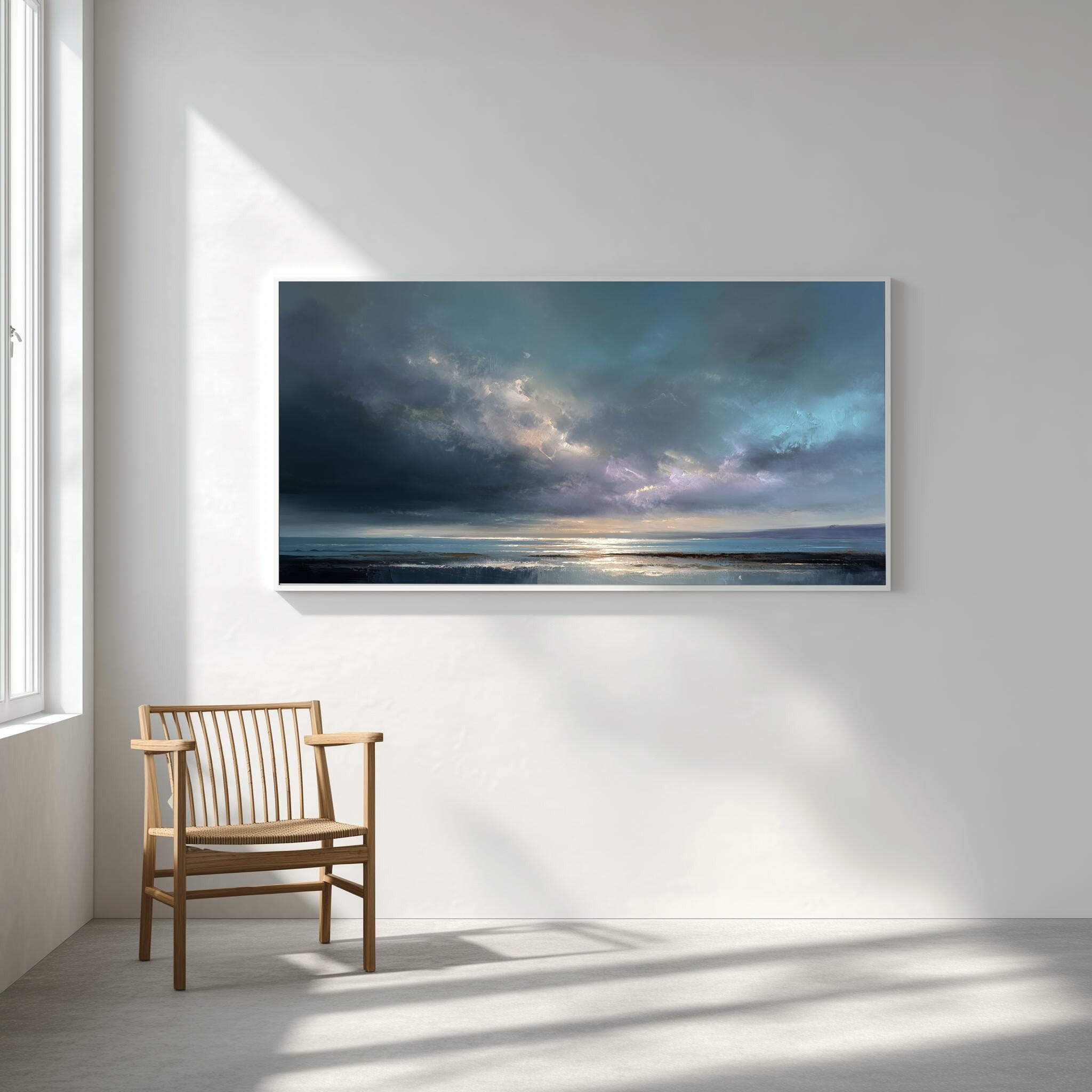 This stunning abstract artwork captures the serene beauty of a Sussex Beach, with a focus on calming blue tones and expansive skies. The intricate textures and soft hues evoke a sense of tranquillity, making it ideal for those looking to bring a piece of coastal serenity into their home.