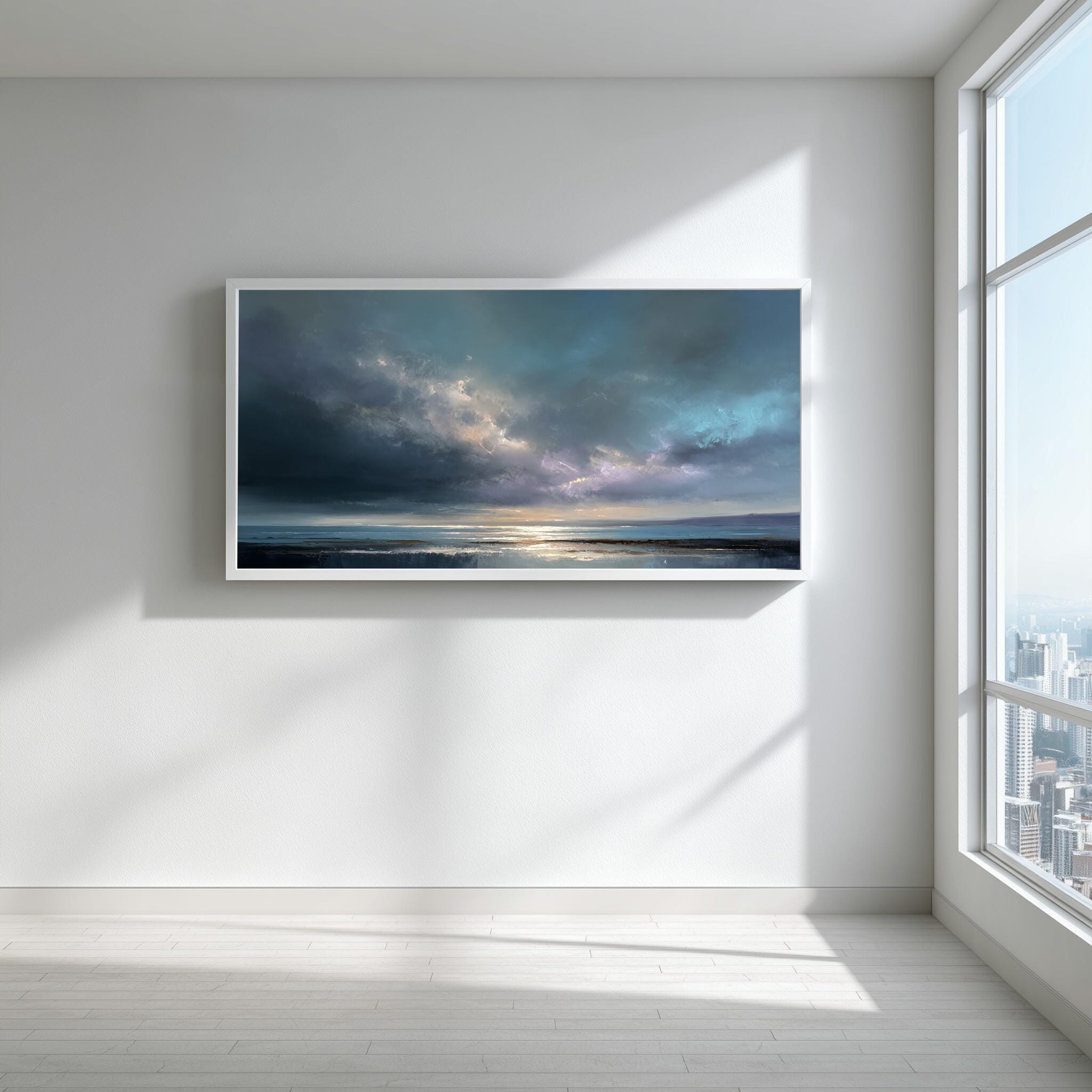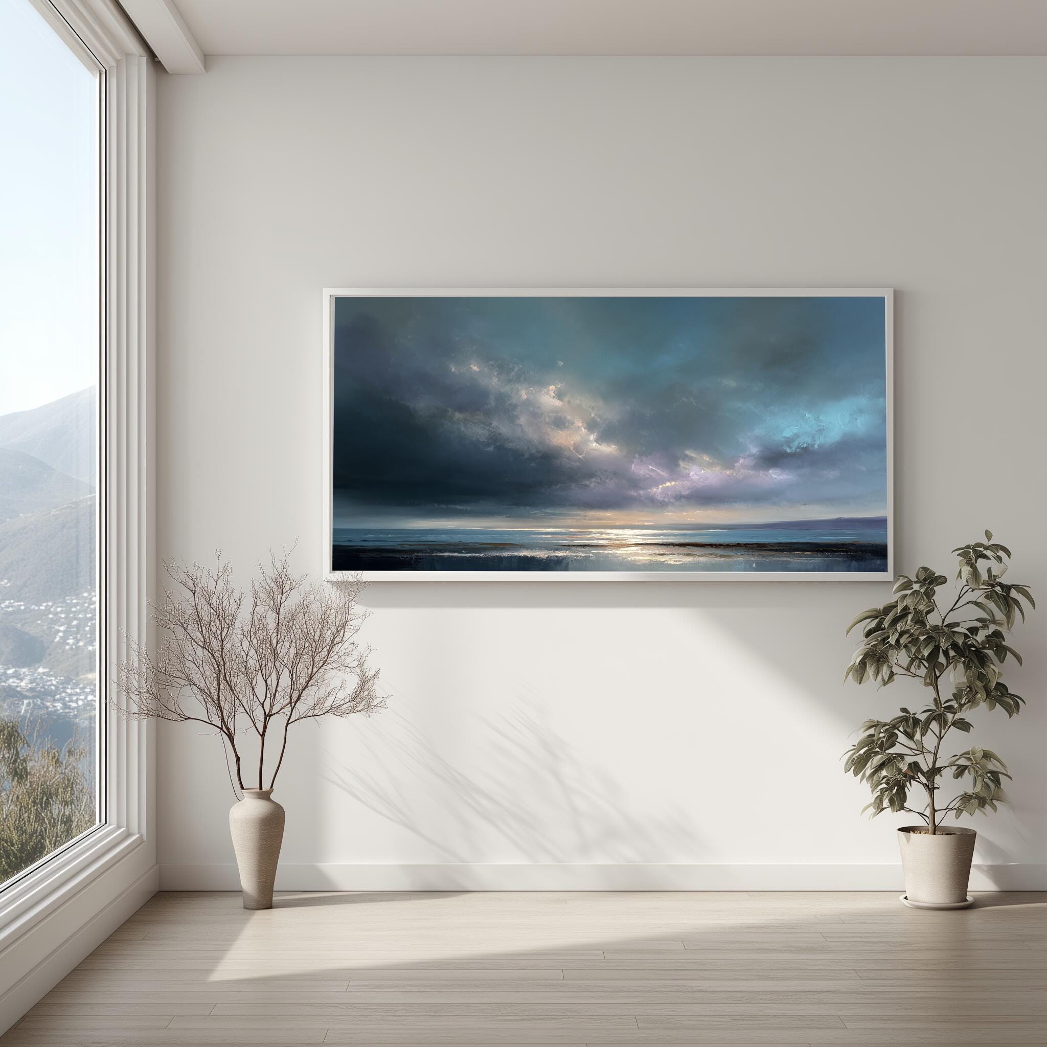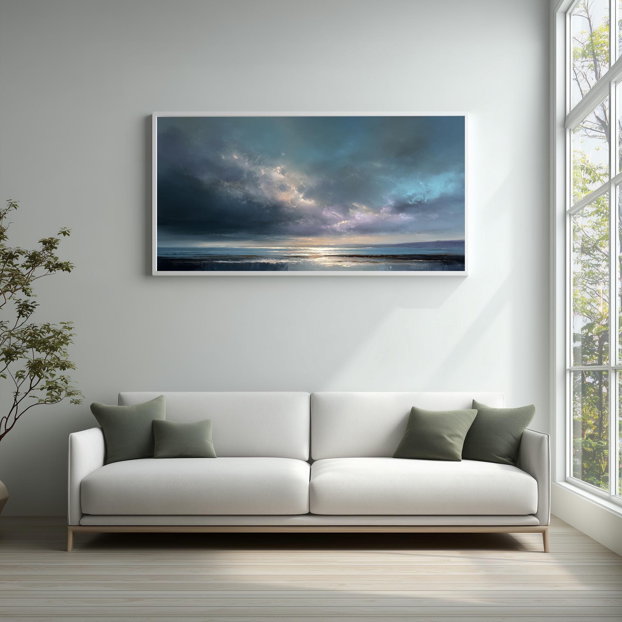 This piece makes a thoughtful housewarming gift, sure to delight any art lover. The coastal theme and abstract approach are perfect for those who appreciate the fusion of nature and modernity. Available as a canvas print, framed artwork, and wall art, it's designed to fit seamlessly into your home decor.