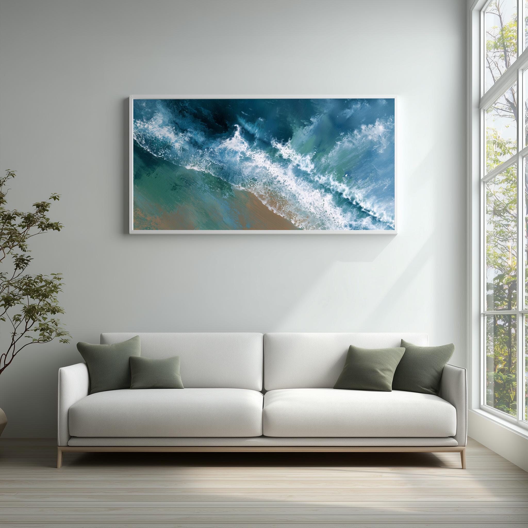 A thoughtful housewarming gift or a delight for any art lover, this canvas print adds a sophisticated touch to home decor. Embrace the soothing blues and allow your walls to tell a story of the ocean's eternal dance.